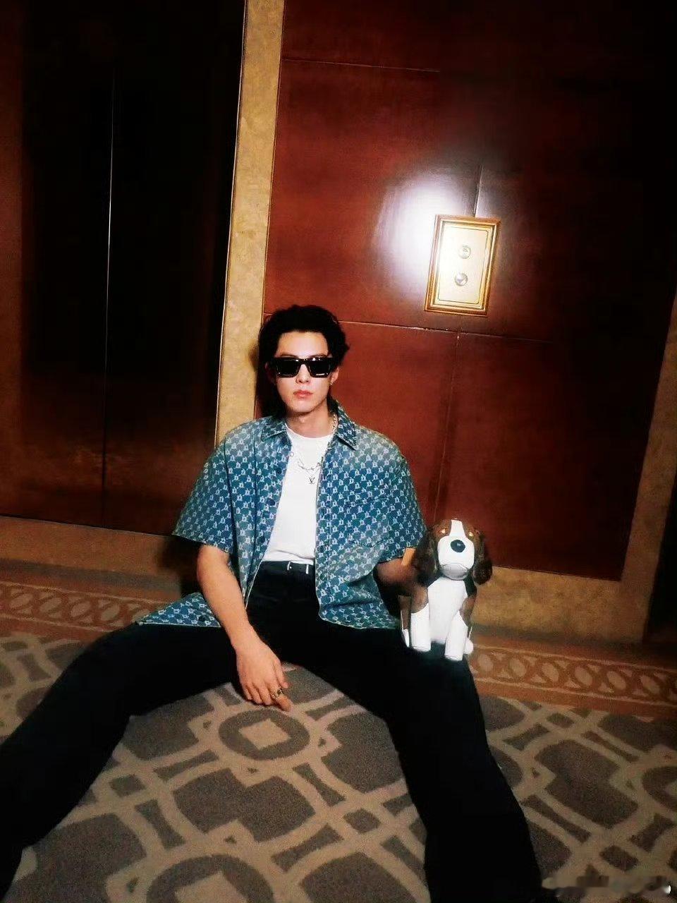 河堤作为LV国内最年轻的代言人身穿LV26春夏款受邀出席F1新加坡大奖赛[憧憬][憧憬]
