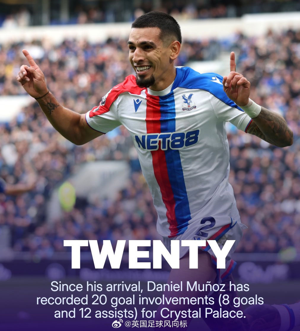 2025年10月,坐稳水晶宫主力位置的穆诺兹,已经为球队在各项赛事出场74次,8球12助攻,合共参与球队20个进球,是球队跨赛季19场比赛不败的关键人物。