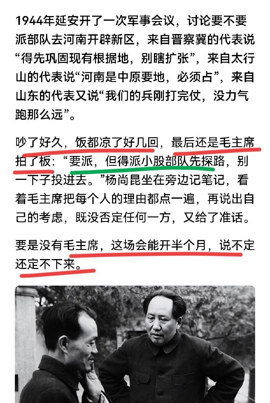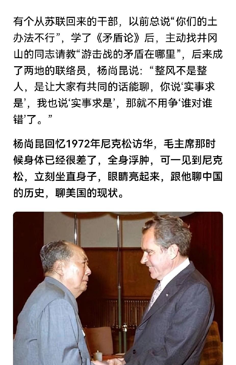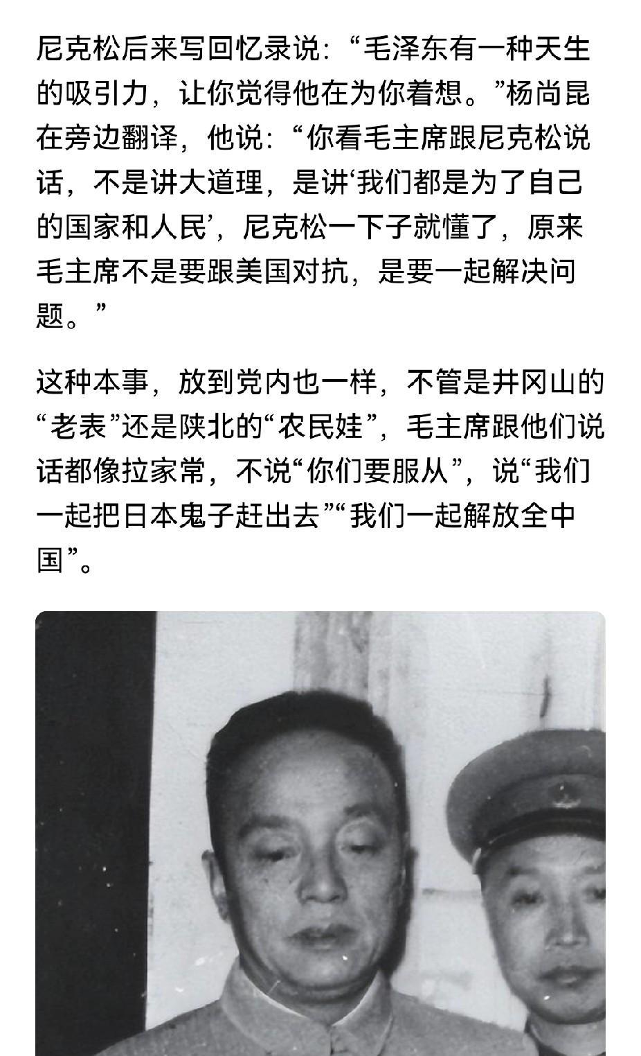 看了杨尚昆的话,才知道毛主席这句话妙到毫巅,那就是认识山头,照顾山头,反对山头主义,也只有毛主席,能把这些人整合到一起,拧成一股绳,劲往一处使。 这句话妙在何处? 妙就妙在, 首先,承认山头的存在。 其次,尽可能照顾到各个山头。 第三,这是最重要的,照顾山头可以,但是坚决反对山头主义。 朋友们,这就是智慧啊! 看似简单,但实际操作起来绝非易事。也就是毛主席,能将理论应用于实际,并取得良好效果。 所谓知行合一,莫过于此。