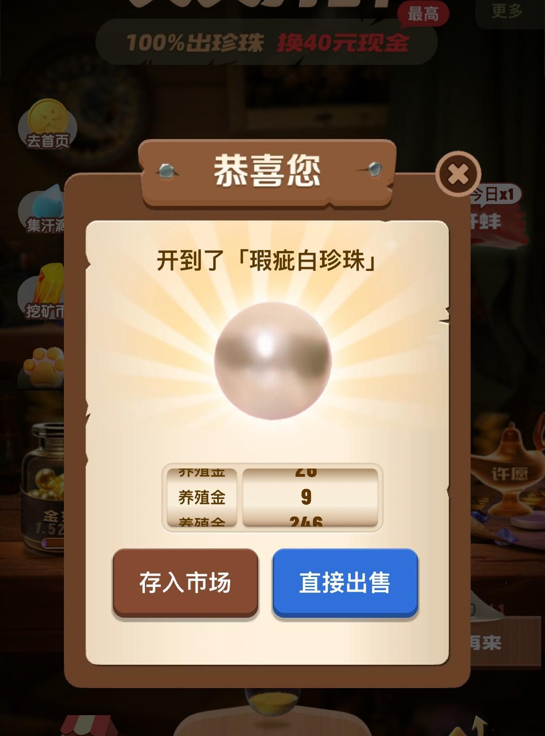今天我的二级宠物蚌,吃得多,产出少,揍扁它的小心思都有! 来来来,大家围观一下,白+黑,2枚瑕疵珍珠,共得养殖金50又2,非常肯定的怀疑,我的二级宠物蚌患有严重的“节日综合症”! 养蚌的日常,哪有那么多惊喜和美好! 能够在精心喂养下,回馈到辛苦费,就是很值得骄傲的事情了吧!