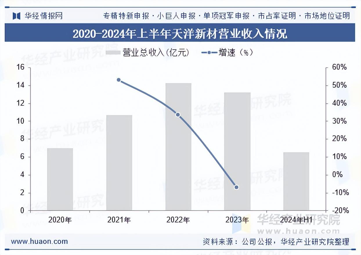 天洋新材(上海)科技股份有限公司是拥有20多年高分子材料合成、改性经验的新材料企业,目前的业务涵盖了光伏材料、家装新型消费建材、电子胶黏剂材料以及热熔环保粘接材料领域。天洋新材聚焦于家装换新巨大存量市场,通过自主核心技术研发,实现环保墙布、窗帘、壁画等产品的不断突破,加速销售渠道拓展,借力互联网及自媒体平台持续推广品牌和产品,打造环保墙面装饰领域领先品牌。2024年上半年,天洋新材营业总收入为6.58亿元。
