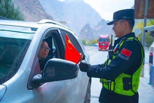 来自成都的自驾游客陈先生一家在等待查验时,意外地收到民警递来的一面小国旗。“国庆快乐,祝您及家人一路平安!”这个持续不到5秒的暖心举动,让经历了剧烈颠簸和高原不适的一家人瞬间愣住了,这面突然出现的国旗让他眼眶发热:“在这荒无人烟的高原上,这面小小的国旗让我们感受到了国庆节的氛围。”