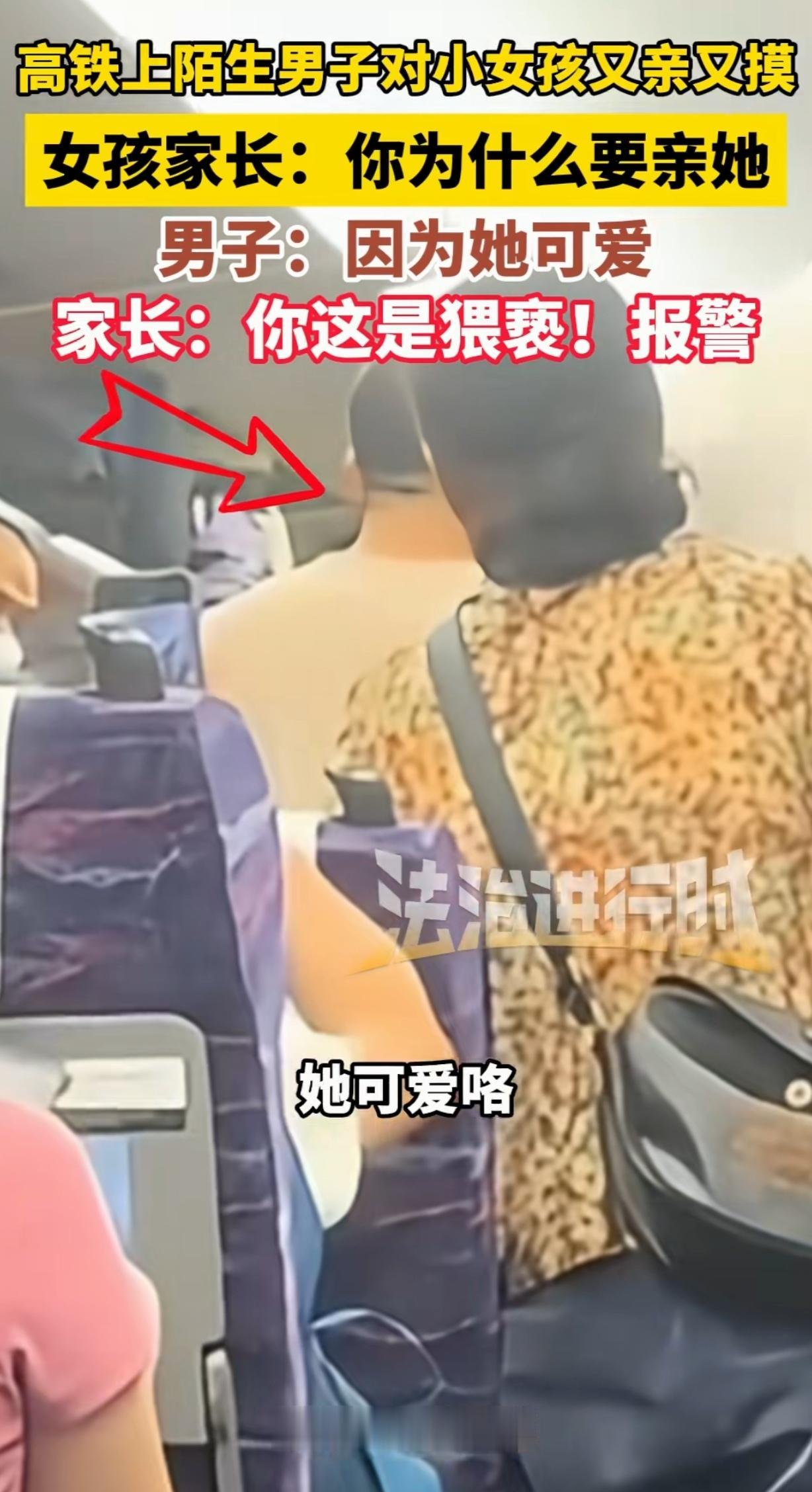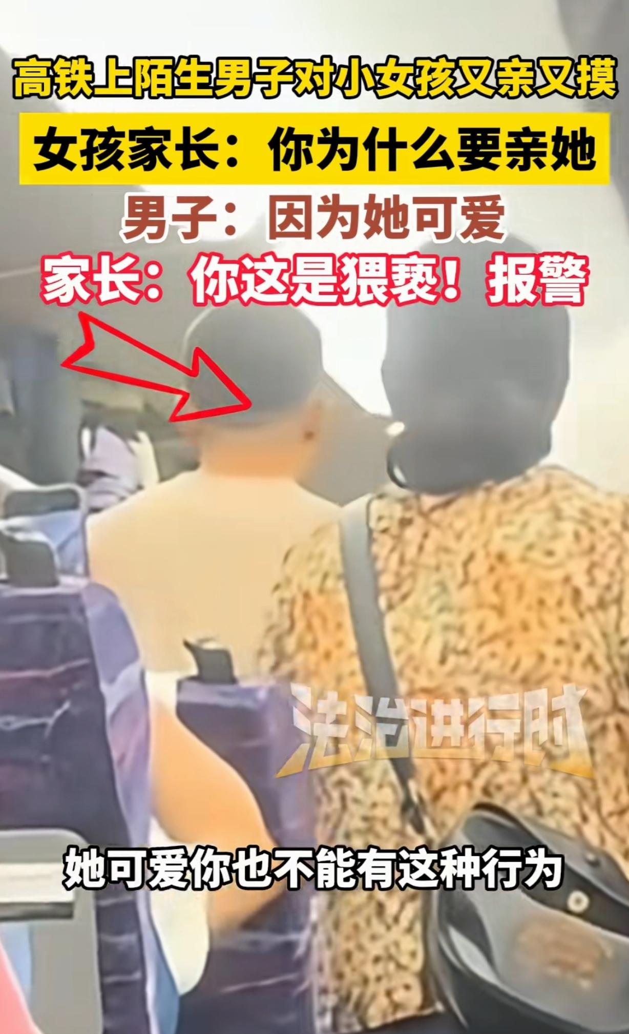 广东,一男子在高铁上,对着一个漂亮的8岁小女孩又亲又摸,女孩的妈妈勃然大怒,怒斥