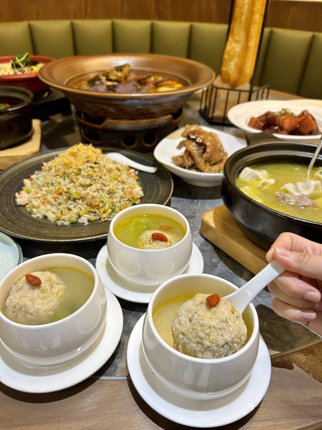 生态麻鸭水饺汤、酥米顿蛋、扬州炒饭