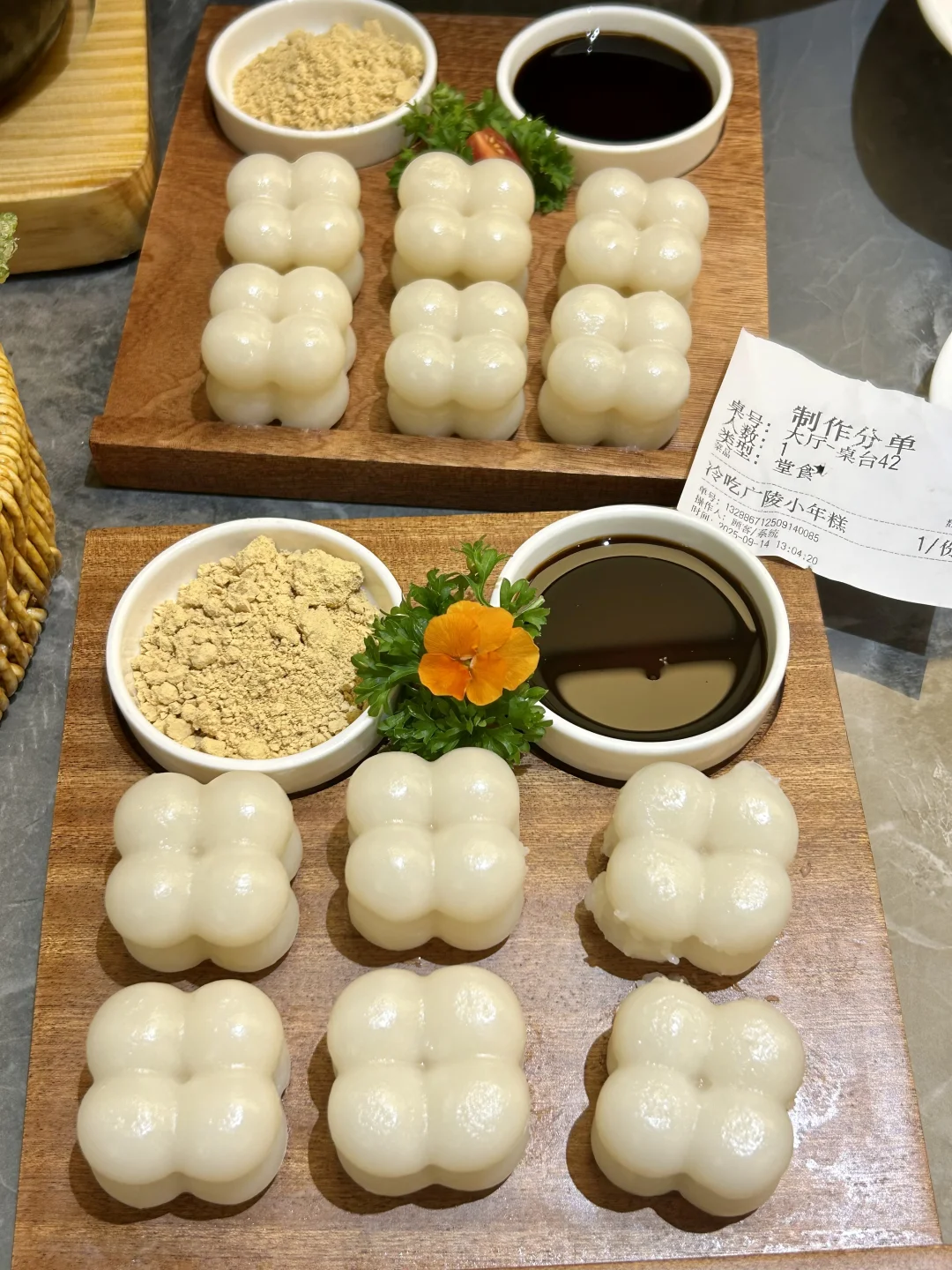 小年糕裹黄豆粉、蘸红糖、空口吃也都好吃