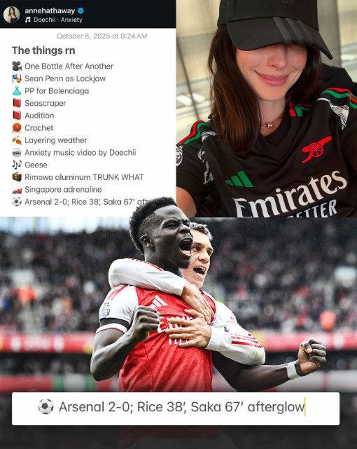 安妮海瑟薇真是个忠实的阿森纳粉丝 金秋观赛季 中秋元气担当 阿森纳著名教授