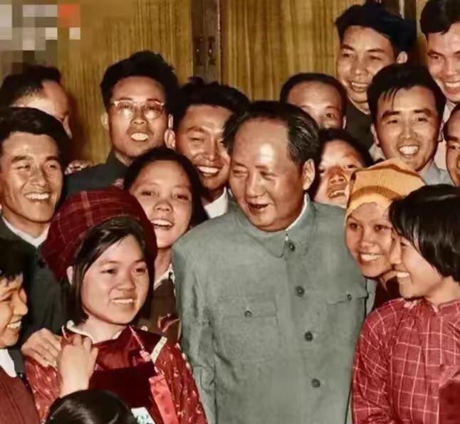 六十年代,毛主席接见青年代表团,和少数民族青年一起合影。 站在毛主席身边的女青年们,她们太幸福了,她们是各行各业杰出人才,能见到毛主席的都不是一般人。 毛主席满面笑容和她们交流,毛主席两旁的的女青年都非常漂亮好看。 估计健在的话,现在也有九十多岁了。 这些女青年们回去后,都是各行各业人才,她们都能幸福一辈子呢。
