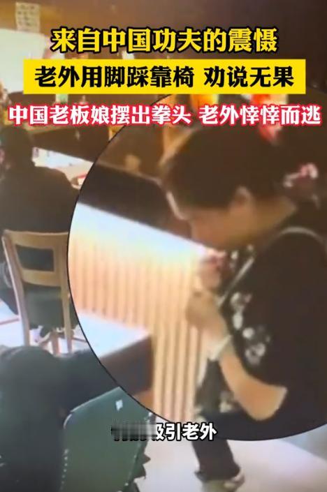 “这个中国老板娘火了!”近日,一外国男子在中国老板娘开的店铺里,肆无忌惮的用脚踩在躺椅上,老板娘多次劝说老外无果后,直接双手握拳摆出功夫的姿势,老外看到这一幕当场吓得从椅子上跳起来,飞快逃离了店铺!网友:果然中国功夫才是最“好使”的。 那天下午,店里人不多,王姐(化名)正蹲在货架边整理。 外头阳光透进来,店里暖洋洋的,背景音乐轻轻放着。 门“吱呀”一声被推开,一个高个子老外走了进来,金头发,蓝眼睛,背着个灰色双肩包,看着三十多岁样子。 王姐抬头笑着打招呼:“欢迎光临!” 老外只是淡淡瞥了她一眼,没回话,径直往货架那边走,边走边看,还时不时哼两句歌。 王姐也没在意,以为他就是随便看看。 谁知没过一会儿,那老外慢悠悠地走到角落,盯上了那把折叠躺椅。 结果老外连犹豫都没有,直接一屁股坐下去,紧接着就把两只脚抬了起来,鞋底朝天,一脚踩在椅背上,一脚搭在扶手上,还晃来晃去。 老公从里屋探出头,小声说:“外面那个老外,又踩你那把椅子了。” 李姐一听这话,火就蹭地上来了。 那躺椅是她特地放在门口给常客歇脚的,昨天刚洗过套子,干干净净的。她抬头一看,只见一个高鼻子、卷头发的老外正坐得舒舒服服,两条腿直接搭在椅背上,鞋底的灰都蹭到布面上了。 李姐赶紧走过去,笑着提醒:“先生,这椅子不能踩脚,麻烦您放下来。” 对方抬眼看了她一眼,连反应都没有,反而换了个姿势,继续晃腿看手机。 李姐又说了一遍,老外仍然装没听见。店里的顾客都看傻了,有人低声嘀咕:“这人也太没素质了吧。” 老外摊了摊手,耸耸肩,一副“我就不挪”的样子,还冲他们笑笑。 李姐气得脸都红了。 那把椅子她最爱干净,平时连自家孩子都不让踩。 她深吸口气,忍了又忍,最后还是忍不下去。 只见她往后退半步,两脚一分开,双拳一握,胳膊轻轻一抬,摆出了个电影里常见的“功夫起手式”。 那一刻,她自己也没想太多,就是气上来了,随手一摆。 可没想到,老外的反应出奇地快,他先是愣了半秒,立马从椅子上弹起来,抓起水瓶和背包,一溜烟跑出门,连门帘都带着风。 店里的客人全乐了,笑得前仰后合。 李姐也愣住:“我还啥都没说呢,他跑这么快干嘛?” 晚上她调监控一看,更觉得好笑。 视频里她表情认真、拳头紧,确实有点“武林高手”的架势。 她随手把视频发到抖音,写了句:“老外是不是都觉得中国人会功夫?”没想到,一夜之间视频播放量破百万,评论区全是笑哭的表情。 “这就是文化的震慑力!” “估计他脑子里已经闪回李连杰和成龙了。” “讲十句道理不如握一次拳。” 网友们的评论一个比一个欢乐。 李姐后来也说,她她也没真想吓人,就是想表达个态度,这地方有规矩,不是你想咋来就咋来。 李姐说:“我不是凶他,只是想让他明白,在别人地盘得懂礼貌。你要好好说,我当然也好好说,可你非得不听,那我只能用他听得懂的‘语言’沟通了。” 现在那段视频还被网友剪成了搞笑合集,配上节奏感十足的背景音乐,成了小网红段子。 李姐每次看都乐:“早知道这姿势这么有用,我一开始就该出拳。” 对此你怎么看? 信源:小强热线浙江科教