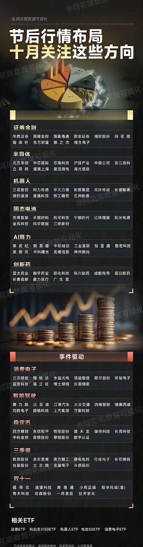 十月行情布局有门道。从节前情况看,券商保险拉升,或是中长线增量资金入场,像证券 ETF 连续 17 个交易日资金净流入,保险也有新政节后实施;也可能是主力试盘,不过很多个股没跟上。