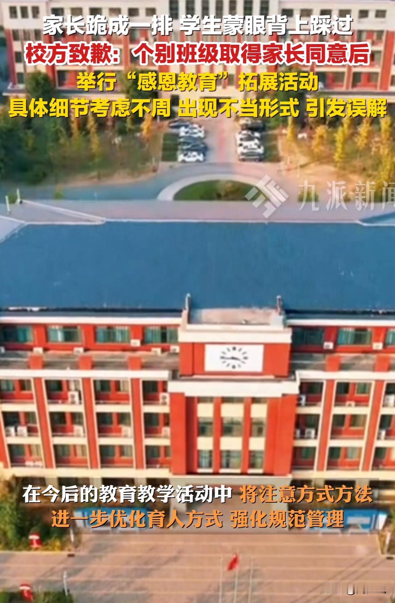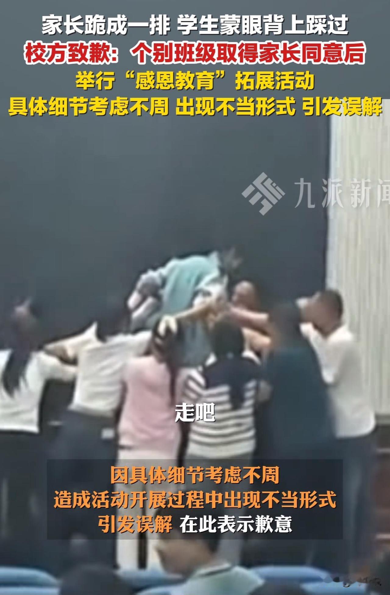 中学“感恩教育”引争议,校方通报致歉:细节考虑不周! 今日,河南郑州中牟新区第三高级中学就“学生从家长身上踩过”事件发布通报。通报称,9月30日高一年级家校共育活动中,个别班级经家长同意后开展“感恩教育”拓展活动,因活动细节考虑不周,出现不当形式,引发媒体和网民误解,学校对此致歉。 校方表示,今后将改进教育方式,强化规范管理,感谢社会各界监督。 此事引发网友热议,有网友认为“致歉态度诚恳,但需明确不当形式的问题本质”; 也有网友质疑“家长真自愿?感恩教育不应突破伦理底线”; 还有网友呼吁“学校应拿出具体整改措施,避免类似问题再犯”。 这事周少认为学校搞感恩教育本是好事,但让学生踩在家长身上,显然把方向带偏了。感恩的核心是教会孩子尊重和体谅父母,可这种不当形式,反而可能让孩子模糊对“尊重”的认知,也伤了家长的心。 光道歉不够,得真正想明白,什么样的活动才能让孩子学到真东西。说到底,教育还是得走心,不能走形式。 大家觉得真正的感恩教育该怎么搞?怎么看待该校让学生从家长身上踩过?#寻美三湘# #长沙新朋友#