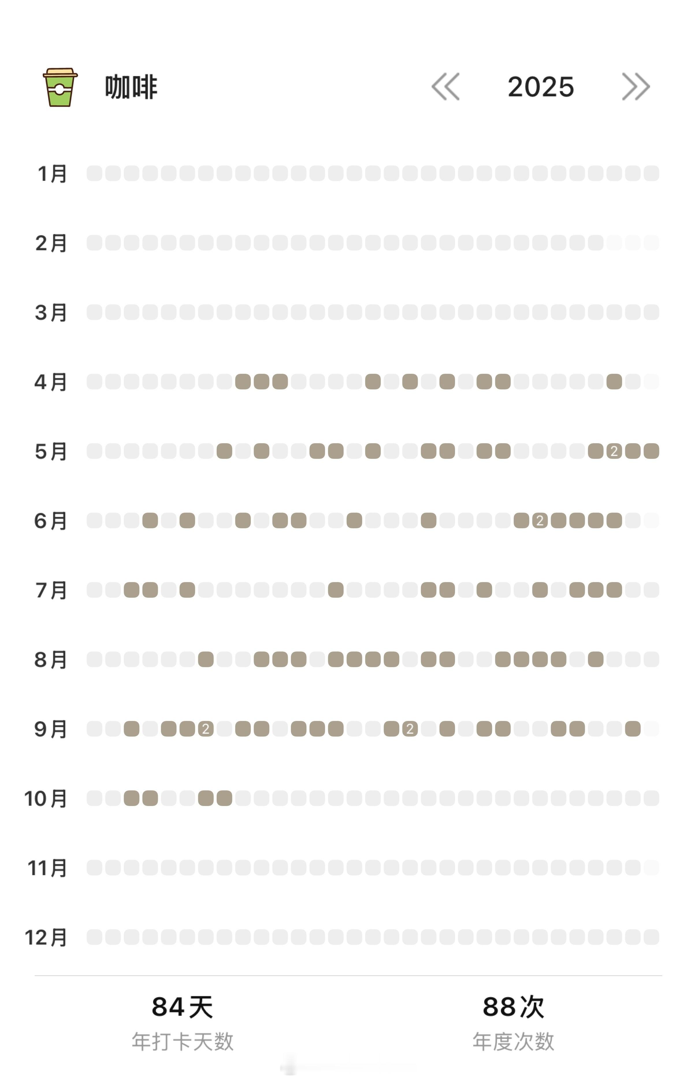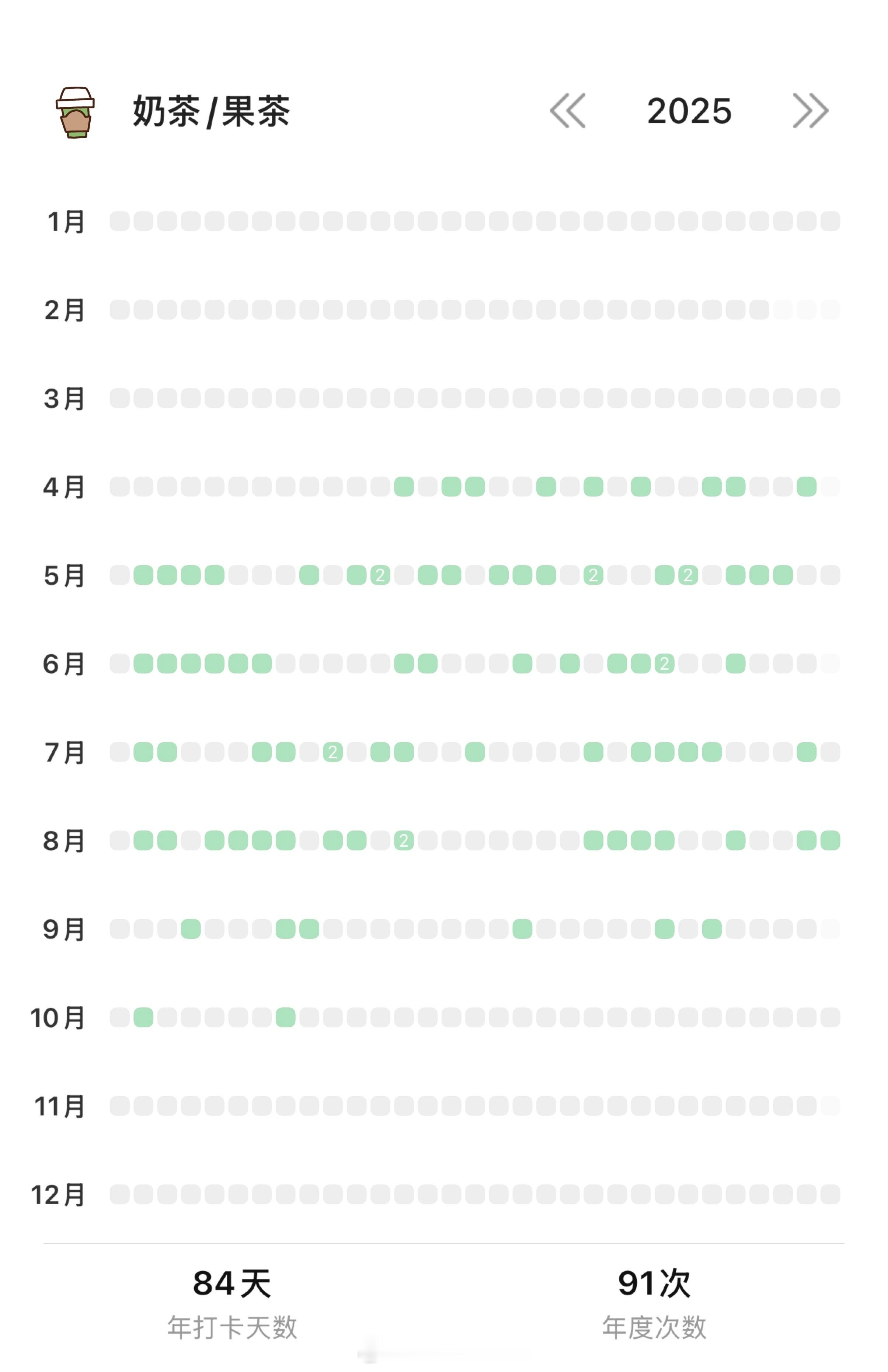 每天喝茶vs每天喝咖啡看了一下我今年喝的奶茶和咖啡的量,从四月份开始咖啡一共88杯,奶茶/果茶一共91杯