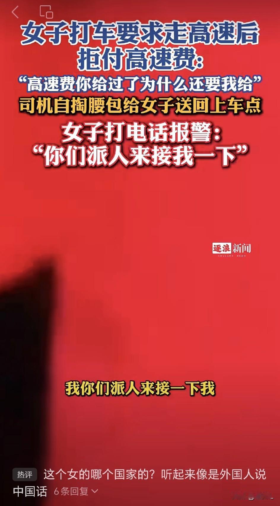 近日,广东一女子打车时,为了赶时间,主动要求司机走高速。 让人意想不到的是,快到目的地时,却以“司机已经垫付高速过路费,自己无需额外支付”为由,拒绝支付高速过路费。 甚至嚣张的说,“我没钱,我不给,就是有钱也不给。” 司机也是个有脾气的,既然商量不通,司机直接掉头,将女子送回上车点。 中途,后排门被女子强行拉开,车辆不得不停下。 女子报警,语出更加惊人,讲司机要把自己送回上车点,自己不想坐他的车了。然后,亮点来了,“你们来接我一下。” 这是从哪个朝代穿越而来的皇太后?指挥起警察叔叔来如此的理直气壮。 网友们一致对司机的做法赞誉有加,说对付这样的“小仙女”就应该这样霸气,绝对不能惯着她。 尤其对她最后报警时,用命令的口吻要求警察叔叔来接她,更是让人无语到极点。 笑过骂过,仔细想想,其实三方都有不足。 女子的不足,网友已经说了很多,不再赘述,单单说说司机和平台。 这件事上,司机原本是占理的,但他的处理方式解气是很解气,但又有很大的隐患。 女子拉开后排车门,万一情绪激动,发生了不可逆的伤害,就算明知女子无理在先,司机又怎能置身事外? 因为,乘客上车,订单开始,也就意味着契约生效,司机有责任把乘客送到目的地。 生气把女子送回目的地,心理上舒服了,但事实上确实违约了。面对赖账的乘客,司机应该直接打电话报警,反正车里有监控有证据。 再说平台,如果对选择高速的乘客自动弹出自行承担高速费,是否就可以有效减少矛盾的发生? 同时培训所有网约车司机,在遇到顾客要求或者路线规划走高速时,一定提前和乘客约定好高速费的支付问题,留下软件聊天记录或者监控录像为证据。 总之,不要冲动,冲动是魔鬼。 就算碰上了烂人,也不要跟她纠缠,犯不着因为她而将自己搅进泥潭。理性选择用法律的武器来捍卫自己的权益。 与恶龙缠斗过久,自身亦成恶龙;凝视深渊过久,深渊将回以凝视。 当你站在一楼,有人骂你,你听到了会很生气。当你站在十楼,有人骂你,你听不太清,还以为他在跟你打招呼。当你站在一百楼,有人骂你,你根本看不见,也听不见。 与诸君共勉! 信息来源于逐浪新闻,侵联删!