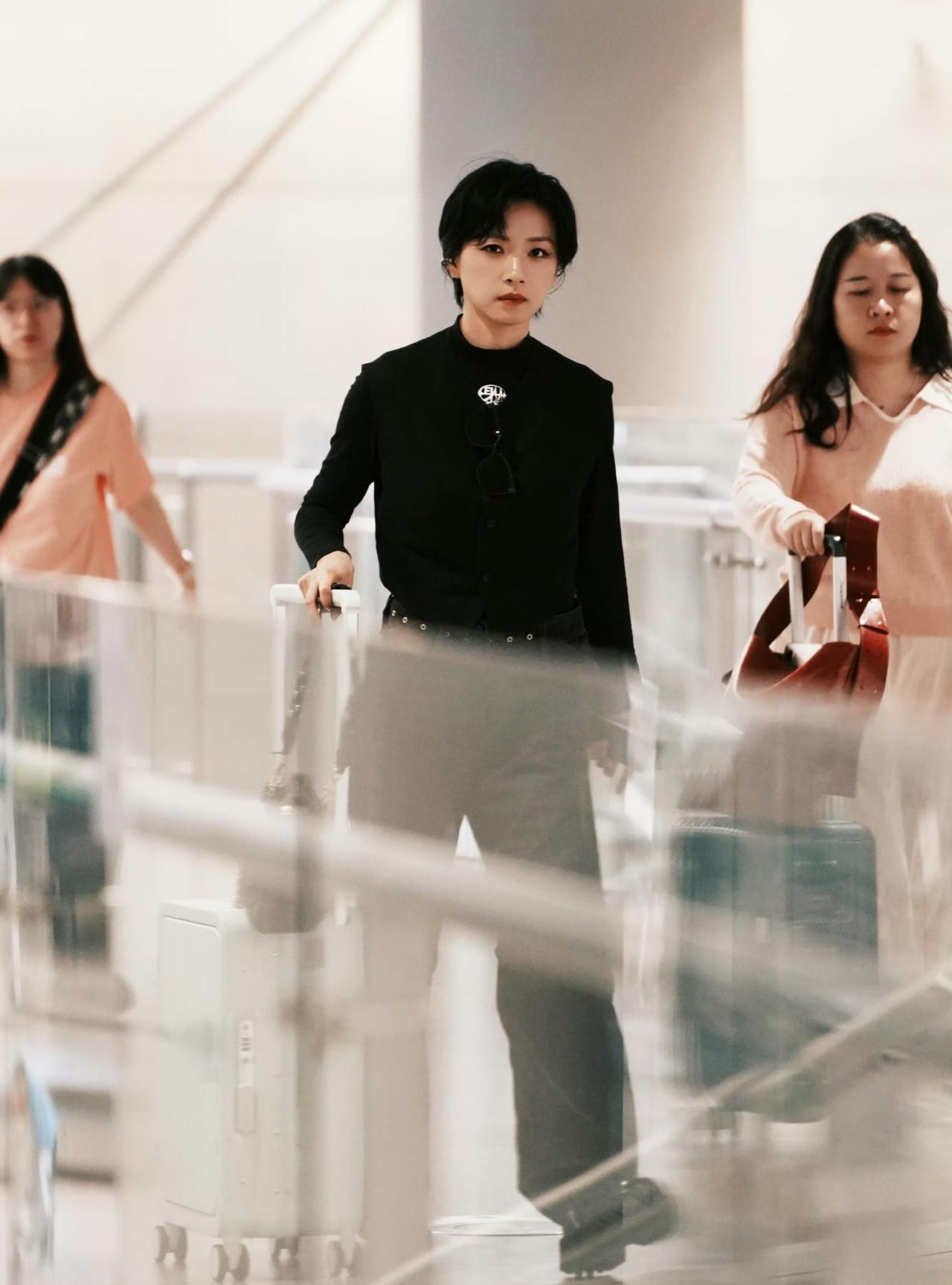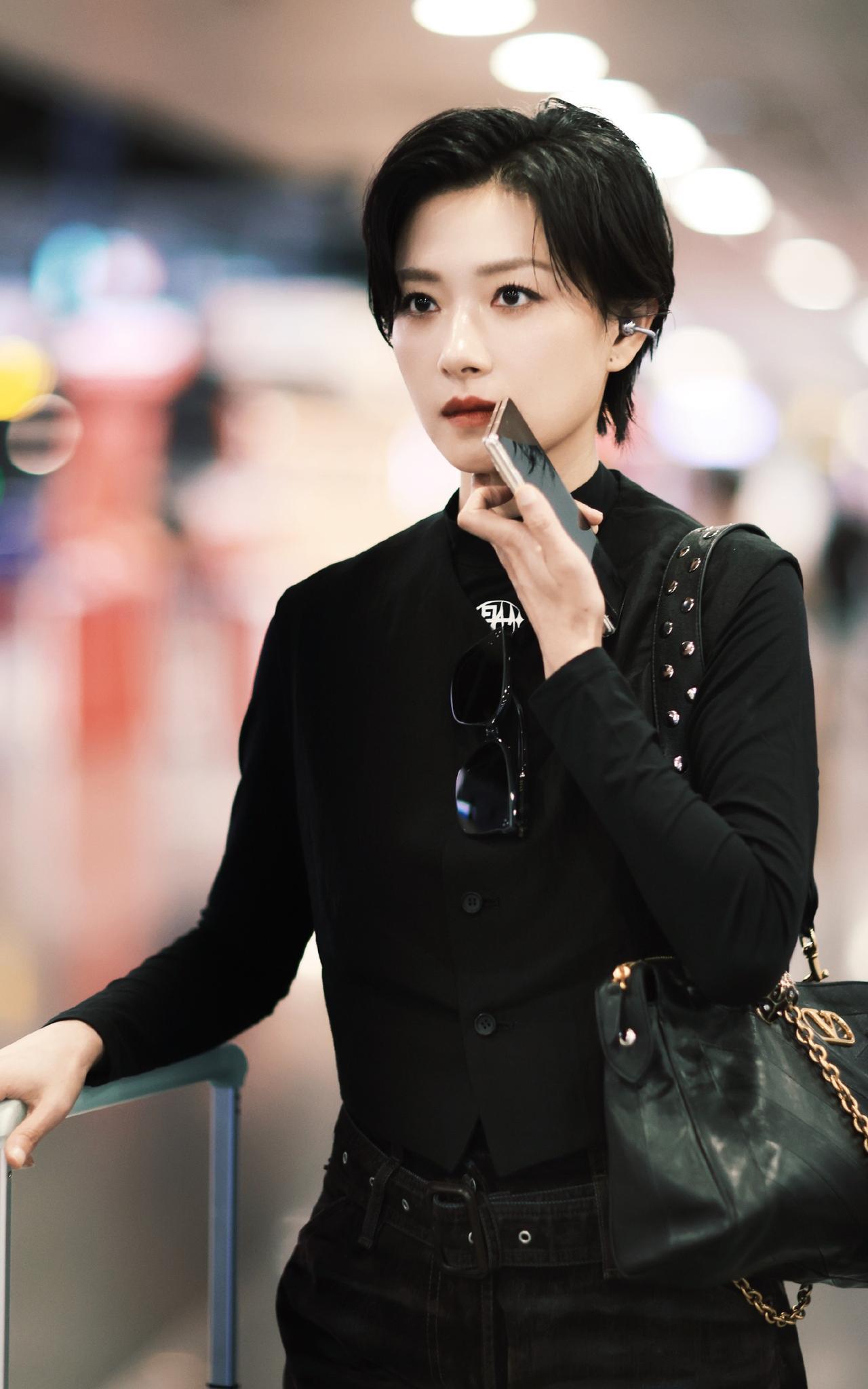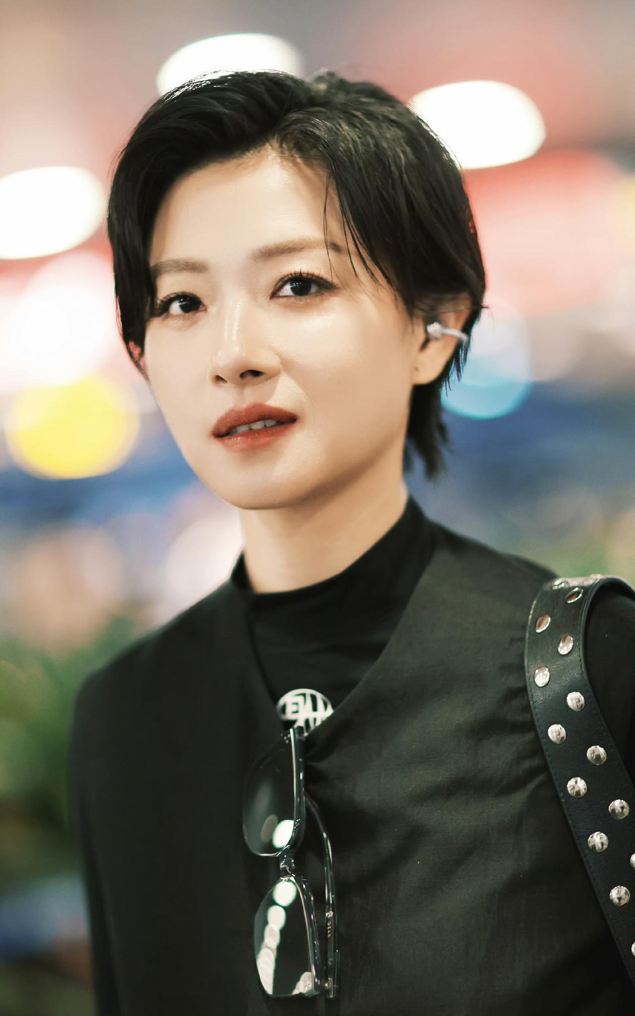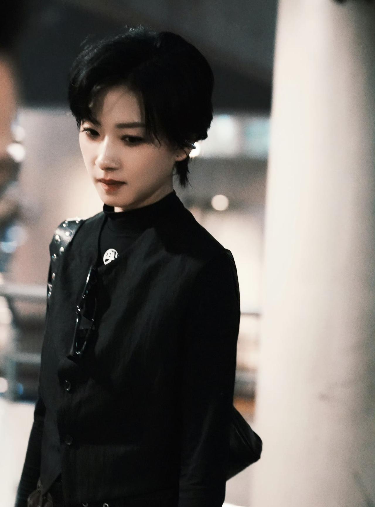 万茜这头短发真是剪到人心坎里去了! 又A又清爽,完全把她的骨相美和清冷感拉满了。 没有多余修饰,就靠利落线条和自信眼神,站在那里就是一股“姐很忙但姐slay”的气场。 这种短发太考验颜值和气质了,但她完全hold住,还显得特别高级。配上这身黑色look,整体干净又时髦,像是那种毫不费力就赢很大的时髦精。