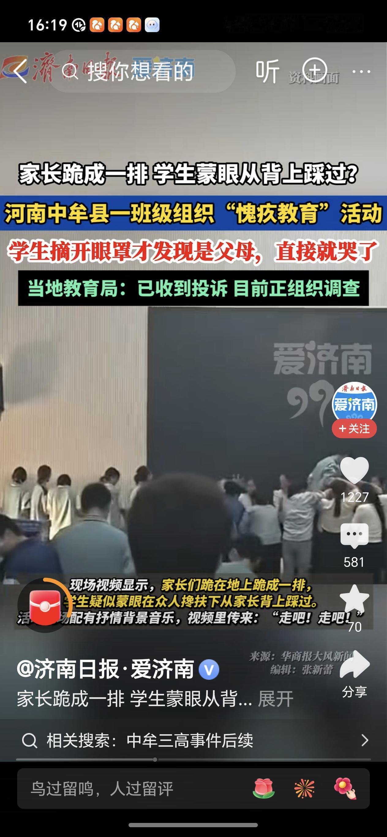 这活动的方式似乎想以此告诉孩子们,家长艰难跪下也要给孩子一条平坦道路,让孩子们感受到家长的付出,反思自己是否对得起父母。 或许教育者的出发点是好的,但这个愧疚式教育的形式是否践踏了孩子父母的尊严,家长们怎么就同意了呢!谁应该愧疚?