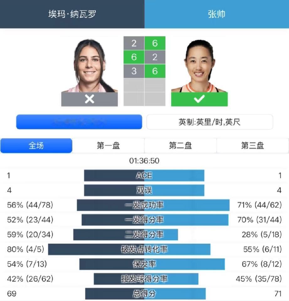 决胜盘后半段发生了什么?纳瓦罗被张帅送了一个隐形蛋?后面几局到底发生了什么? 决胜盘看到张帅0:3落后的时候就不想看了,一是因为比分落后,二是因为张帅决胜盘这三局太多非受迫失误了,最后是因为要去做饭了。没想到转过头来比赛结束了,纳瓦罗被逆转了,吃了一个隐形蛋。张帅这是打鸡血了吗? 要论打比赛的顽强,还得是老将张帅啊,现在的小花都不行!