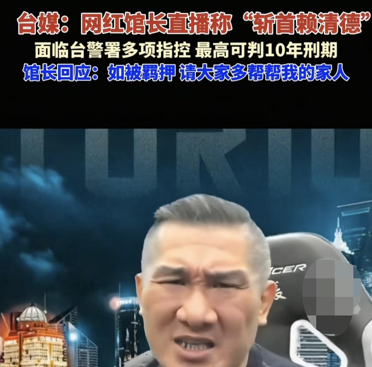 馆长可能染上大麻烦?因在节目上高喊“把赖清德狗头斩下来”,网红“馆长”被民进党