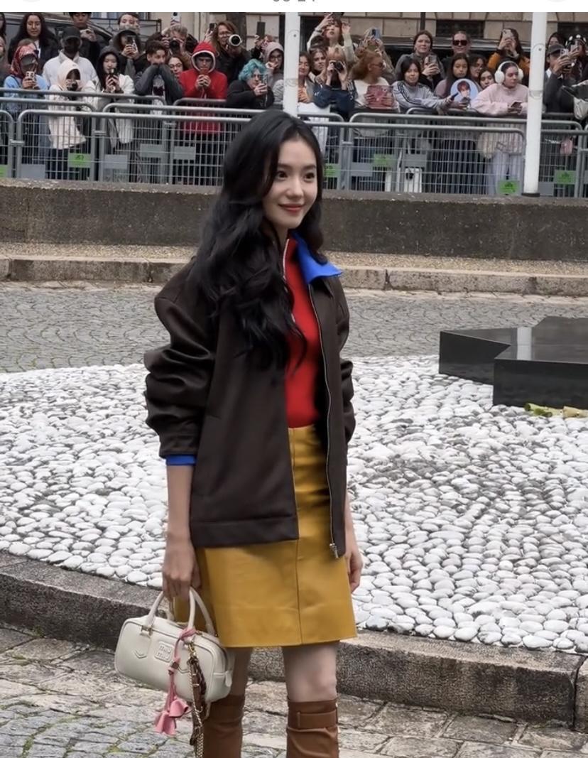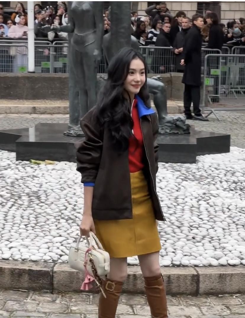 巴黎时装周真是热闹非凡,众多明星纷纷亮相。刘浩存这次在巴黎秀场的表现相当惊艳。在Miu Miu大秀上,她一身穿搭堪称一绝,红色内搭、姜黄色裙子,咖色夹克衫还带着撞蓝色的领子设计,这么多高饱和度颜色组合在一起,不但不杂乱,反而显得很高级。 25岁的她脸部状态超好,大波浪卷发增添了妩媚气质,妆容和衣服适配度也极高,笑起来的模样十分动人。相比之下,此前一些秀场即便有热巴、娜扎等颜霸,造型却没那么亮眼。不得不说,刘浩存这次在巴黎时装周狠狠刷了一波存在感。