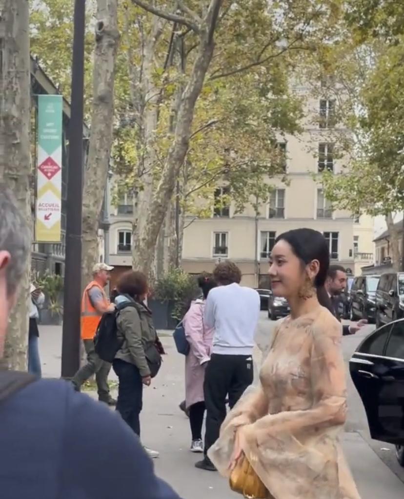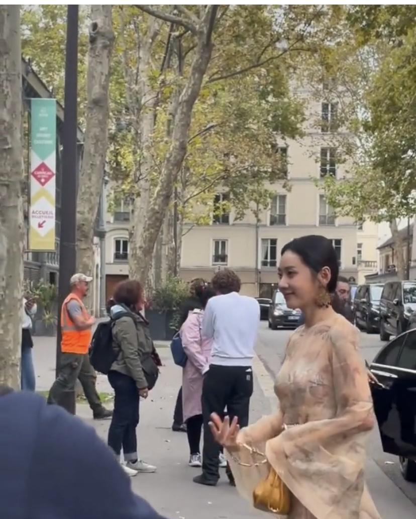 10月7日巴黎时装周红毯上,秋瓷炫一身长裙惊艳亮相。她先是身着红色紧身皮衣冷艳登