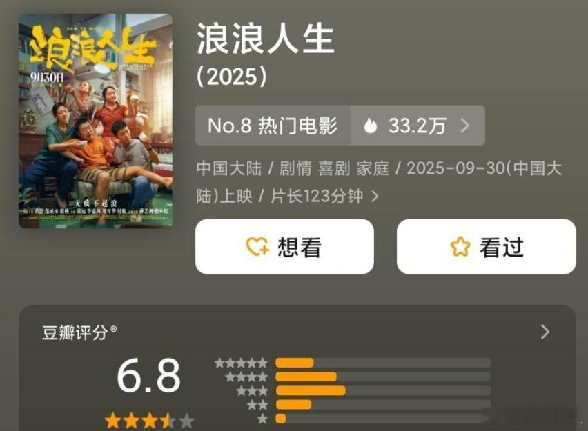 国庆档新电影中,《浪浪人生》无论票房还是口碑,能挤进前列,说明是有优点的。比如有比较激烈戏剧冲突的故事和角色,主题接地气又碰撞,演员阵容也算豪华,轻喜剧的诠释风格,各种元素融合在一起,是有一些看点和吸引力的。但看完以后,评价又不算很高,主要问题是线索比较凌乱,有些情节设计稍显夸张,“不回避苦痛,不刻意煽情,不吝啬希望”,结果主线不够统一,什么都想说,却都没表达到位。还有就是浓浓的南海元素和场景,却被黄渤范丞丞殷桃李佳琦常远等演出了违和的北方风味!