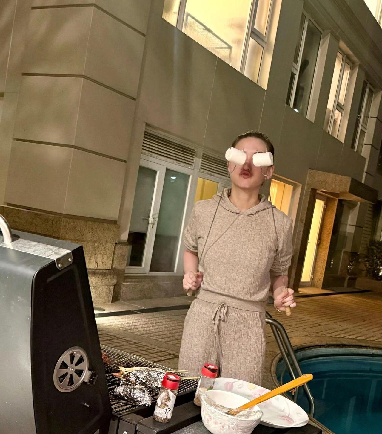 何超莲晒出中秋节在北京豪宅烧烤的照片,不见她老公窦骁的身影。 这两人也是挺奇怪的
