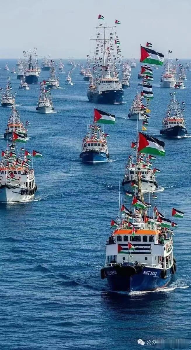 这应该也是很多西方人共同的感觉。所以,才有一大批西方志愿者,跟通贝里一起,组成了“全球苏穆德船队”(GSF,又译为“全球坚韧船队”或“全球坚定船队”)。40多条渔船、游艇,载着加沙急需的药品、粮食等紧急物资,浩浩荡荡驶向加沙海域,试图突破以色列的海上封锁。可笑的是,意大利等西方国家,一开始宣称,派军舰对船队进行护航。但接近以军封锁线时,意大利怂了。护航军舰离开,任由以军士兵登船,对这些志愿者进行逮捕,然后将他们关入监狱。“全球坚韧船队”就痛批,“意大利政府屈服于以色列的傲慢和无法无天”。