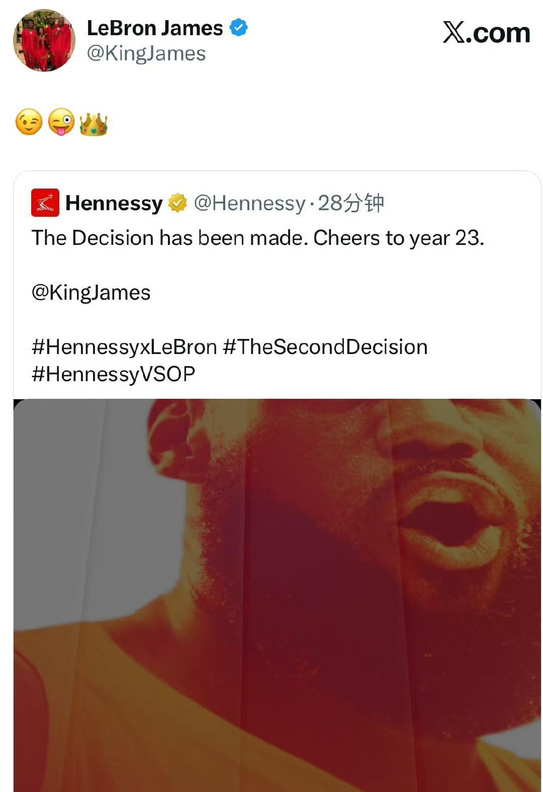 太恶心人了!!!詹姆斯决定为轩尼诗代言! 詹姆斯“决定2”提前公布,果然是一场空,不知道是谁搞了这个噱头,最终结果就是詹姆斯成为轩尼诗的代言人,没别的了。 不知道大家知道这个结果后是何感想,话说是不是稍微有点恶心人了,虽然詹姆斯没有宣布退役对NBA和球队来说是件好事,他们可以继续利用他来赚一波,但是用了“决定2”就有点尴尬了,毕竟这是詹姆斯用来宣布重大决定的方法,如今用到一瓶白兰地酒上,多少还是觉得有点无聊,尽管他们都因此狠狠的赚了一大波。 不过没有宣布退役对很多球迷来说这个结局是好的,球迷们可以继续看詹姆斯的第23个赛季了。 而詹姆斯和轩尼诗合作之后,他又得到了一个大合同,品牌方也是赚大了,双方共赢的局面。