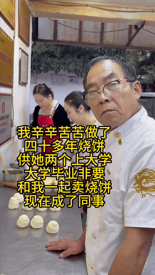 刷到个扎心视频:卖了40年烧饼的大爷,熬白了头供俩女儿读完大学,最后俩姑娘毕业没