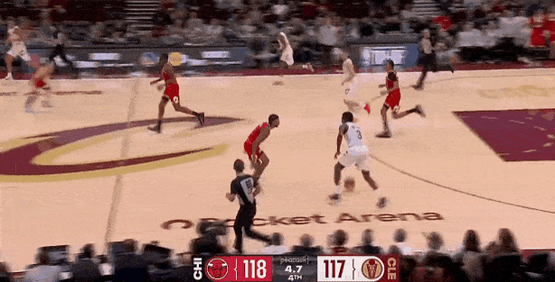 第四节比赛,托马斯-布莱恩特连续被帽两次,错失绝杀机会。