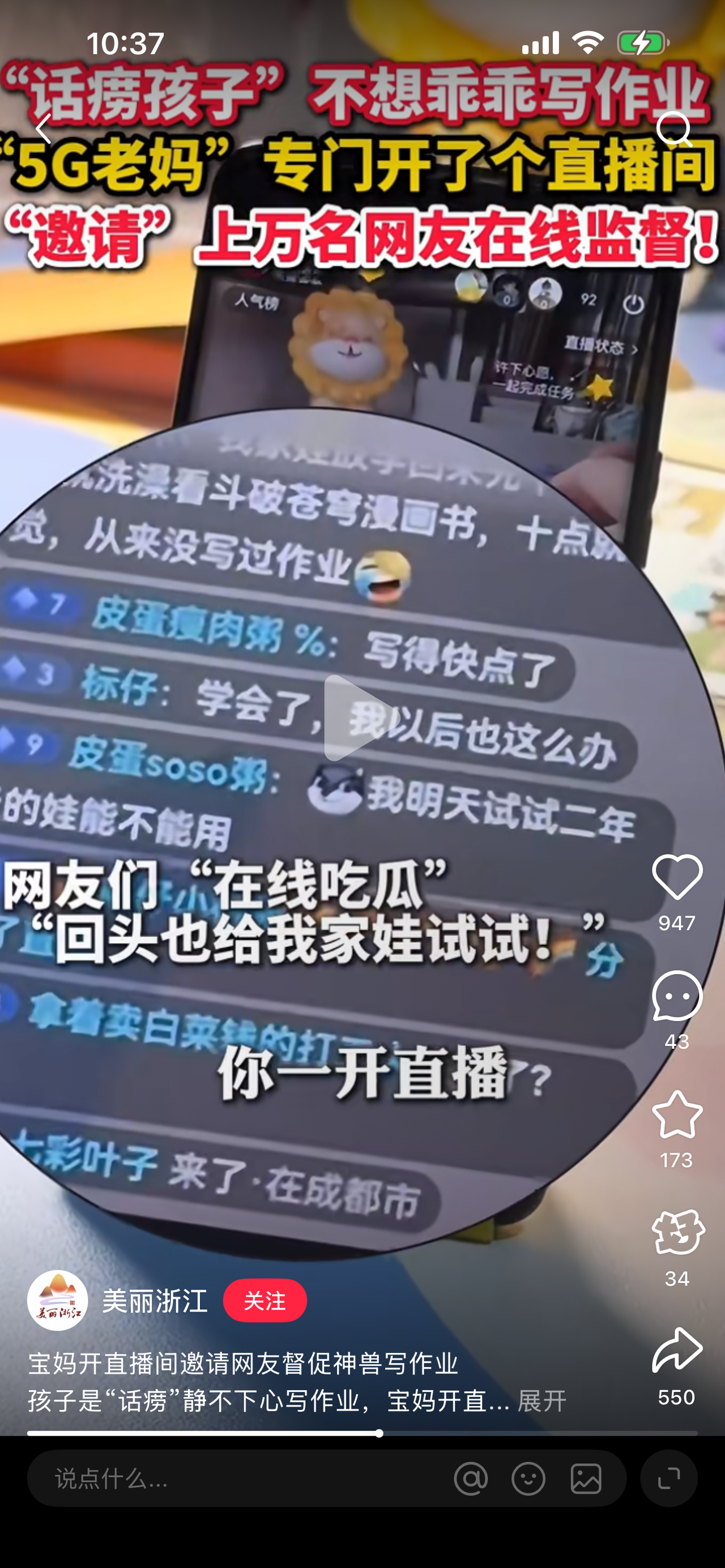 有家长让娃直播写作业,效果不错截图来自美丽浙江