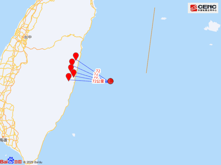 周边县城:震中距丰滨乡64公里、距光复乡70公里、距凤林镇72公里、距寿丰乡72公里、距瑞穗乡72公里,距花莲县77公里,距台北市183公里。