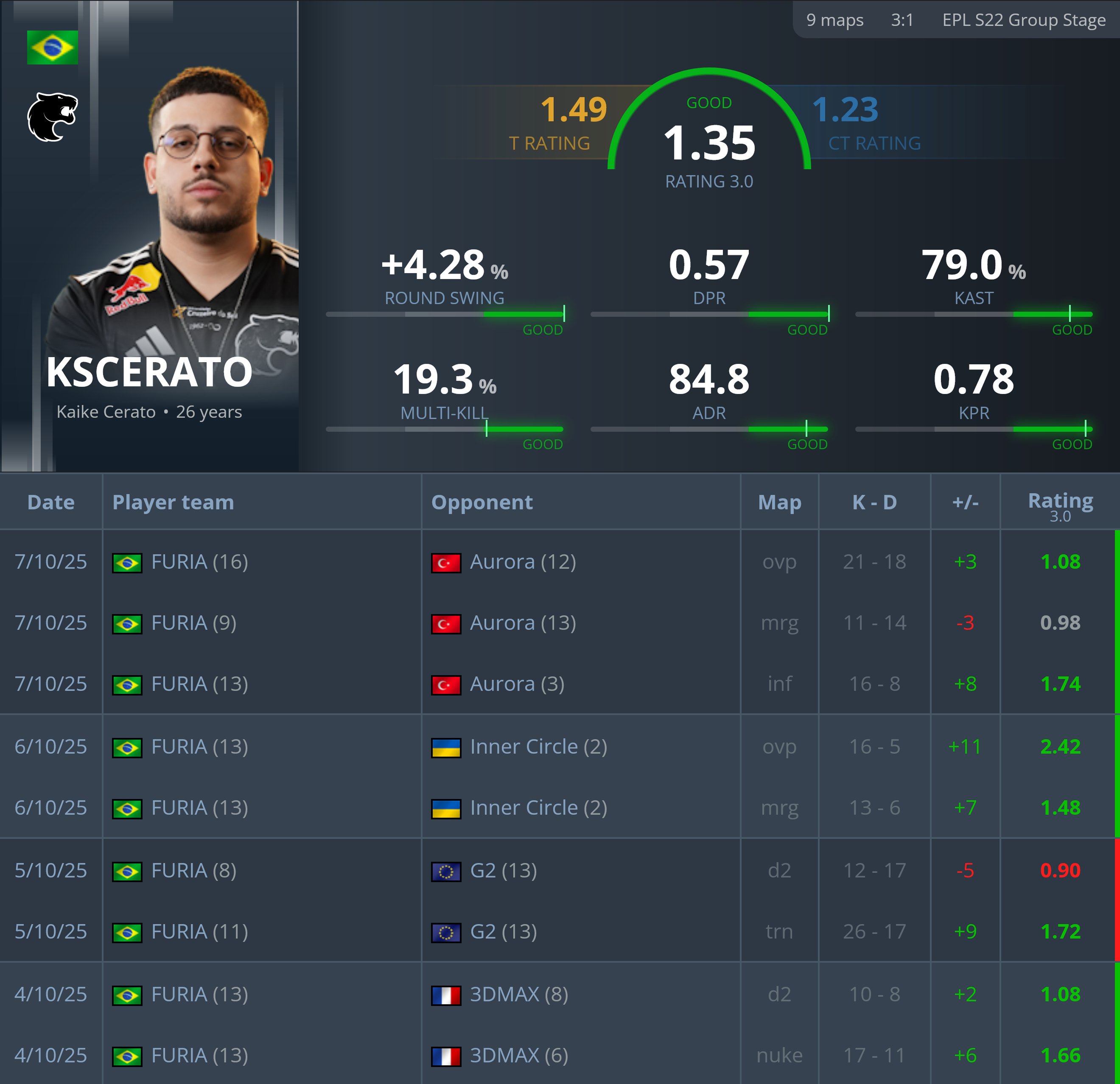 CS数据统计媒体发布选手数据:卡神在EPL S22小组赛的数据