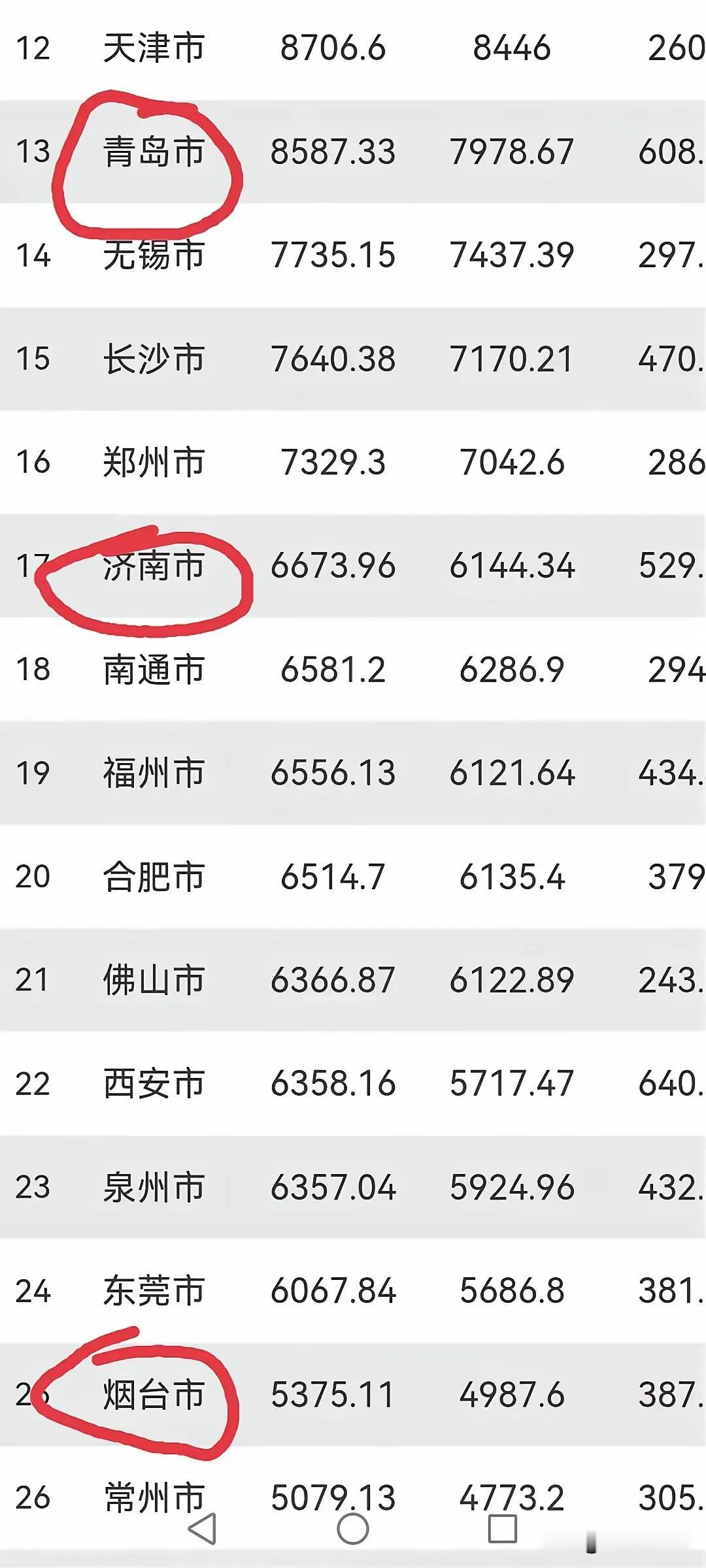 2025年上半年GDP前50位里,山东占了6席,青岛排13,GDP达8587.33亿元;济南排17,有6674亿元;烟台排25,是5375.11亿元;潍坊排36,为4065.3亿元,临沂排46,济宁排48位。 对比2024年上半年,青岛依旧强势,工业生产动力足。济南虽总量稳,但之前增速放缓,可能和产业结构调整有关。烟台、潍坊也持续稳步发展。山东这几个城市能在全国GDP排名中占据不错的位置,可见其实力强劲,未来发展也很值得期待。