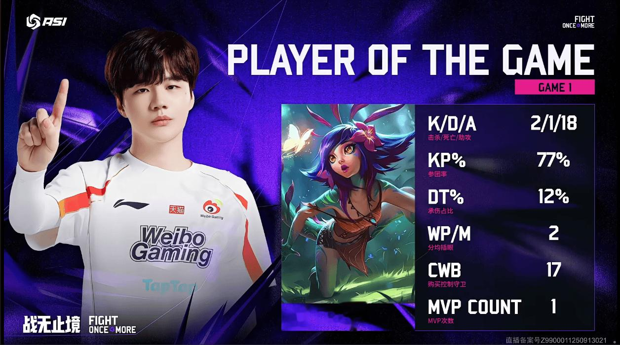 虎扑10月08日讯在刚刚结束的WBG对阵DK的BO3比赛中,Crisp妮蔻打出2/1/18战绩,斩获WBG对阵DK第一局MVP