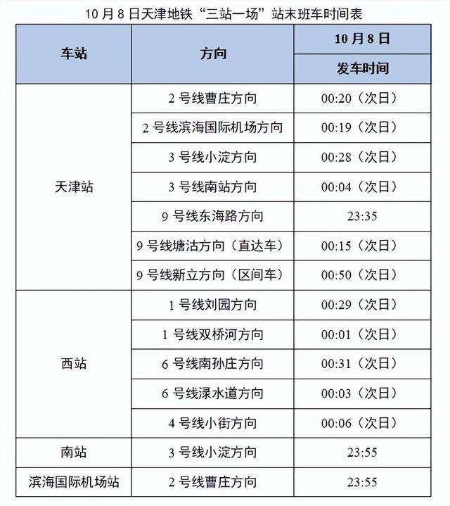 10月8日(假期最后一日)各线路延长运营服务时间1小时,10月10日(周五)常态化延点调整为10月11日(周六)延长运营时间30分钟,在延长运营时间段内,行车间隔不大于15分钟。