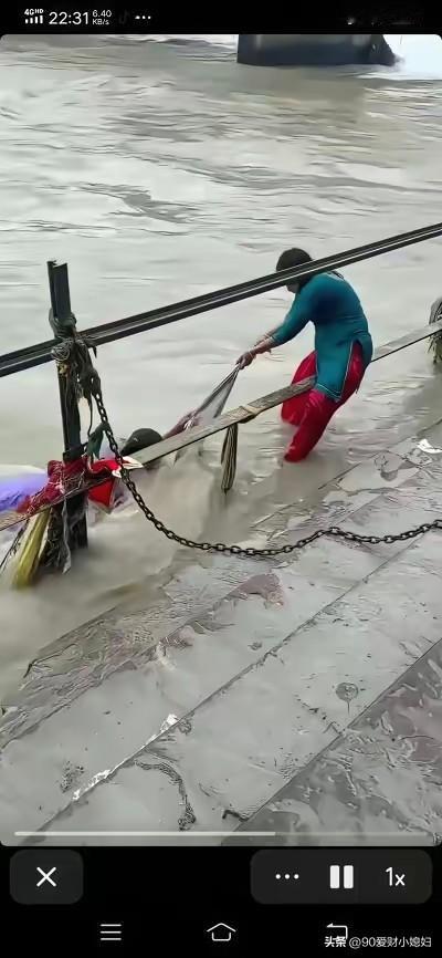 “骨子里的善良!”一位大姐在河边散步,突然听到有人呼救的声音,她往河里看去,看到里面有个女子被湍急的河水冲着往下而去,人在水里浮浮沉沉的,高举着双手喊救命! 大姐看到这一幕心里一急,她往四周看看,没什么人,然后赶紧往下游跑去,前面有台阶可以下去。大姐看着湍急的河水也是害怕,自己不知道水多深也不敢贸然下去,到时候不但救不了人,自己也危险了。 身边也没有绳子,就是大姐着急的不知道该怎么办的时候,她注意到了护栏上挂着不知道从哪里冲下来的那个蛇皮袋子。 大姐赶紧解下来一个,然后一脚踏出护栏,探出身子,紧紧抓着蛇皮袋子一段,对着飘过来的人大喊,让她抓住袋子,自己拉她上来! 所幸,落水的人离岸边不远,慌乱中也顺利的抓住了袋子,大姐就把她拉了上来! 看到最后人被救上来就放心了,真的是要感谢这位的沉着冷静,机智果敢!在这么危急的情况下,大家还能这么冷静的处理问题,利用身边的一切条件去救人。在保证了自己的安全下成功的救下女子,这真的是最好的结局,为这位大姐点赞。 再次提醒大家,去河边一定要注意安全,尤其是刚下过大暴雨的地方,河道湿滑,河水湍急,一旦滑下去真的是很危险。自己不熟悉的水域一定不要靠近,敬畏自然,珍爱生命。