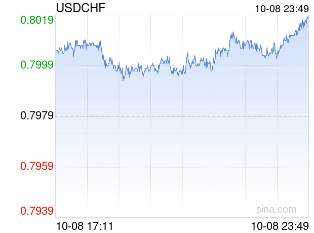 新浪外汇消息2025年10月08日,截至23时49分,外汇市场上美元兑瑞士法郎汇率突破1美元兑换0.8019瑞士法郎。涨幅为0.5013%