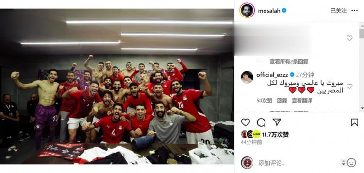 梅开二度!萨拉赫社媒晒全队更衣室合照,庆祝埃及进军世界杯