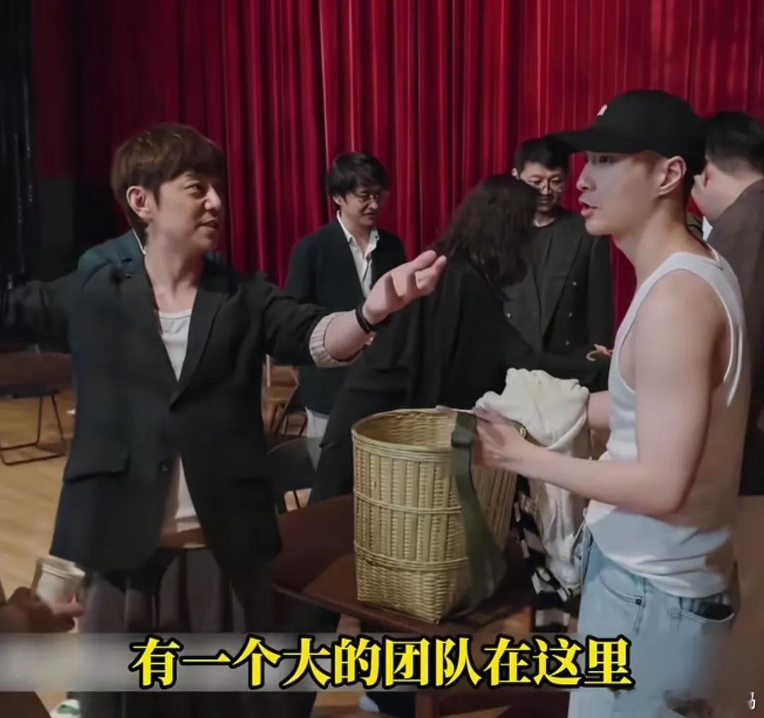 两人刚进门时那小心翼翼的样子,像生怕惊扰了大家,带着点可爱的拘谨——大概是原以为只有黄磊和何炅在,没料到有这么多人,一时有点手足无措。黄磊看着他们的眼神里满是温和,倒让这略显局促的场面添了几分暖意。