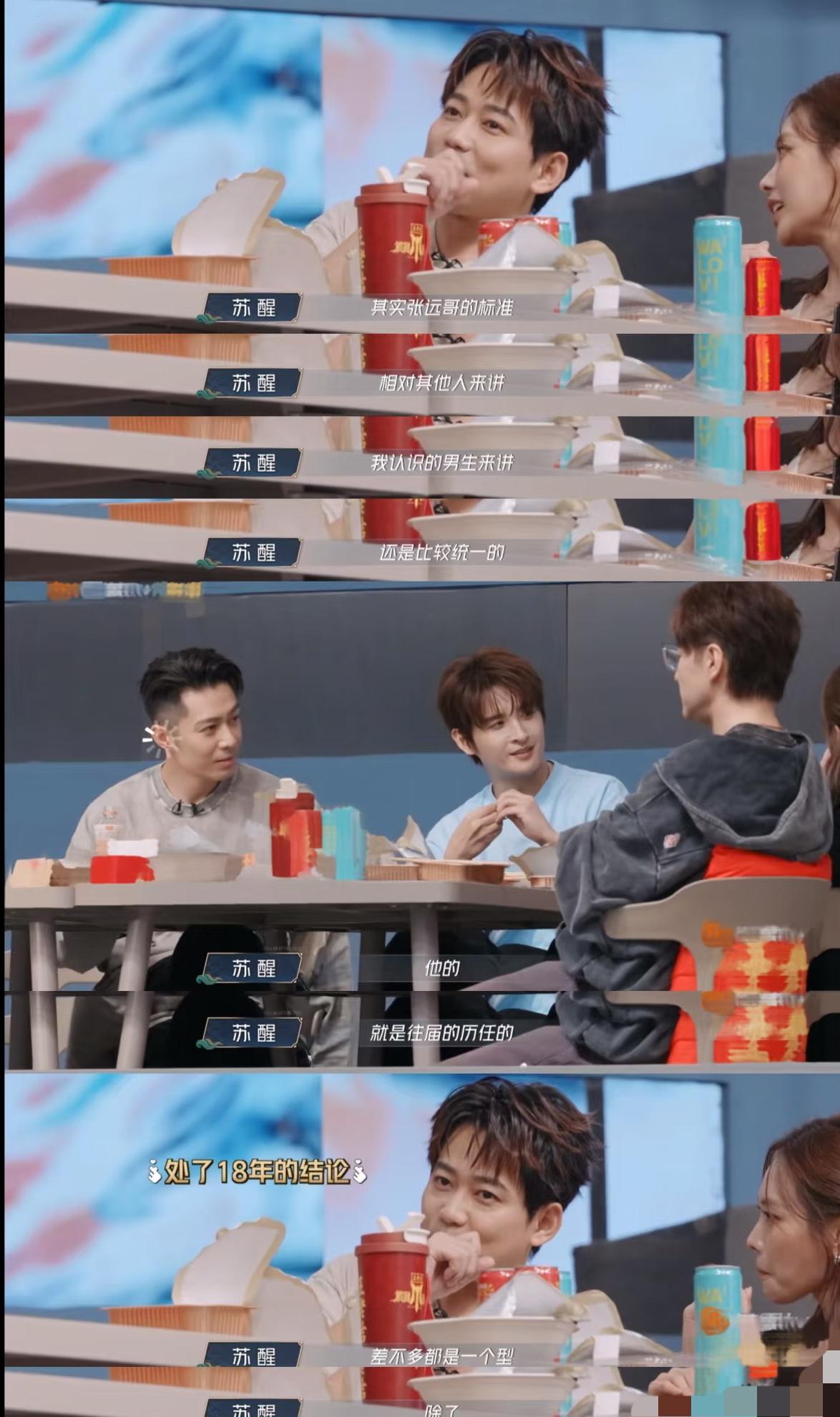 传下去,张远喜欢女孩脸上有肉的。 哈哈哈,单身的张远总会成为大家的谈资。 披哥5上又聊起了张远对另一半的标准。 没想到苏醒上来就要爆料,一句“往届历任”调足了在座的胃口。 亮哥抓紧扭转这吃瓜的局面,话题转向征婚标准。 结果张远很实诚地说脸上有肉的、可爱的就好! 哈哈哈,看来苏醒很了解兄弟的喜好,也见过张远的前任们啊! 还是亮哥更护犊子,家属感很重。