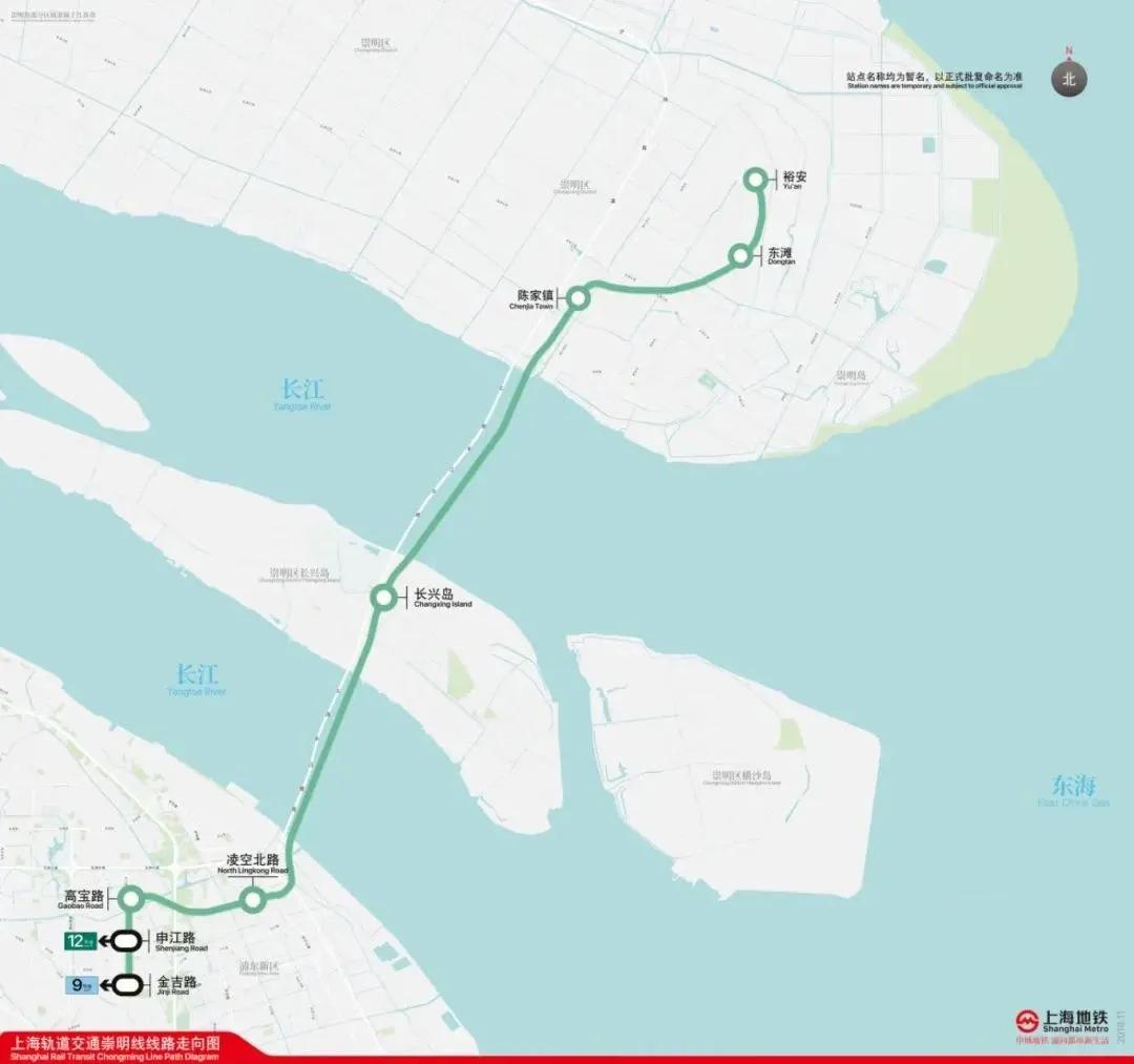22号线(崇明线)是上海首条穿越长江的轨道交通线路,同时也是目前国内最长距离穿越长江的轨道交通线路,22号线长约43公里,共设8座车站,起自浦东新区金吉路站,途经浦东新区、崇明区,主体沿申江路、东靖路敷设,经长兴岛两次穿越长江,在崇明区陈家镇上岛,终至崇明岛裕安站。最高运行时速可达120公里。22号线建成通车后,将进一步强化崇明世界级生态岛与长三角城市群的联动效应,为区域发展注入强劲动能。