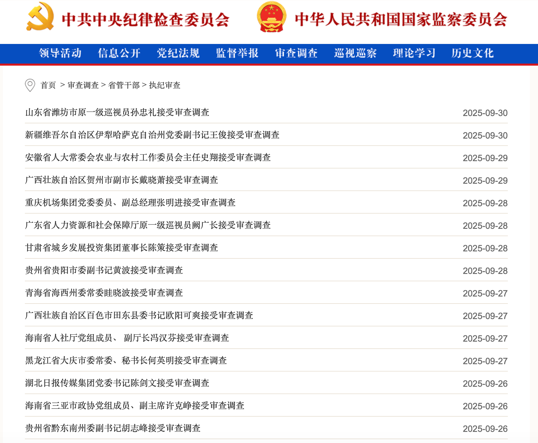 此外还有:中国工商银行河南省分行原党委书记、行长许杰被开除党籍;青海省西宁市委原常委、秘书长、一级巡视员管新民被开除党籍;云南省普洱市人大常委会原党组成员、副主任魏刚被开除党籍和公职;原湖南建工集团有限公司党委委员、副总经理谈毅被开除党籍;贵州省毕节市委原常委、统战部部长潘发勇被开除党籍和公职;等等。