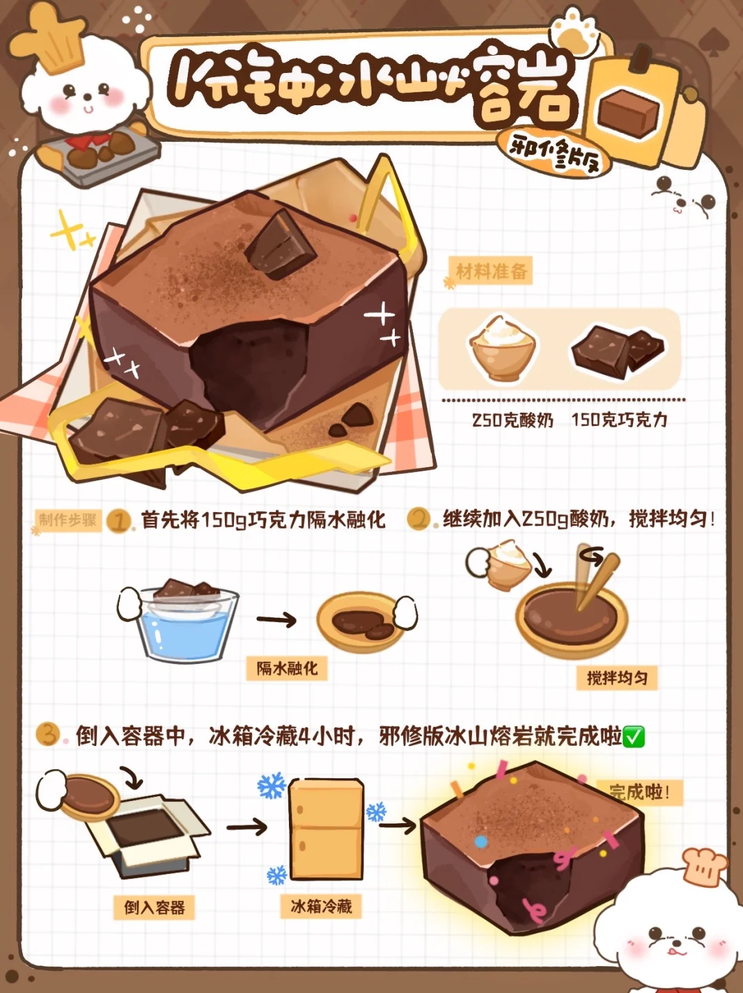 步骤:巧克力隔水融化+酸奶搅匀→倒入容器→冰箱冷藏4小时!