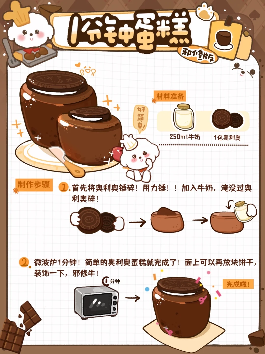 步骤:奥利奥锤碎+牛奶淹没→微波炉1分钟!