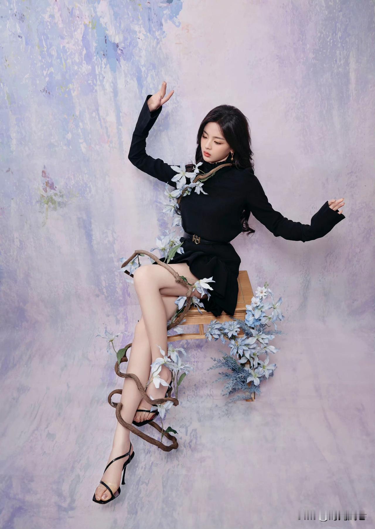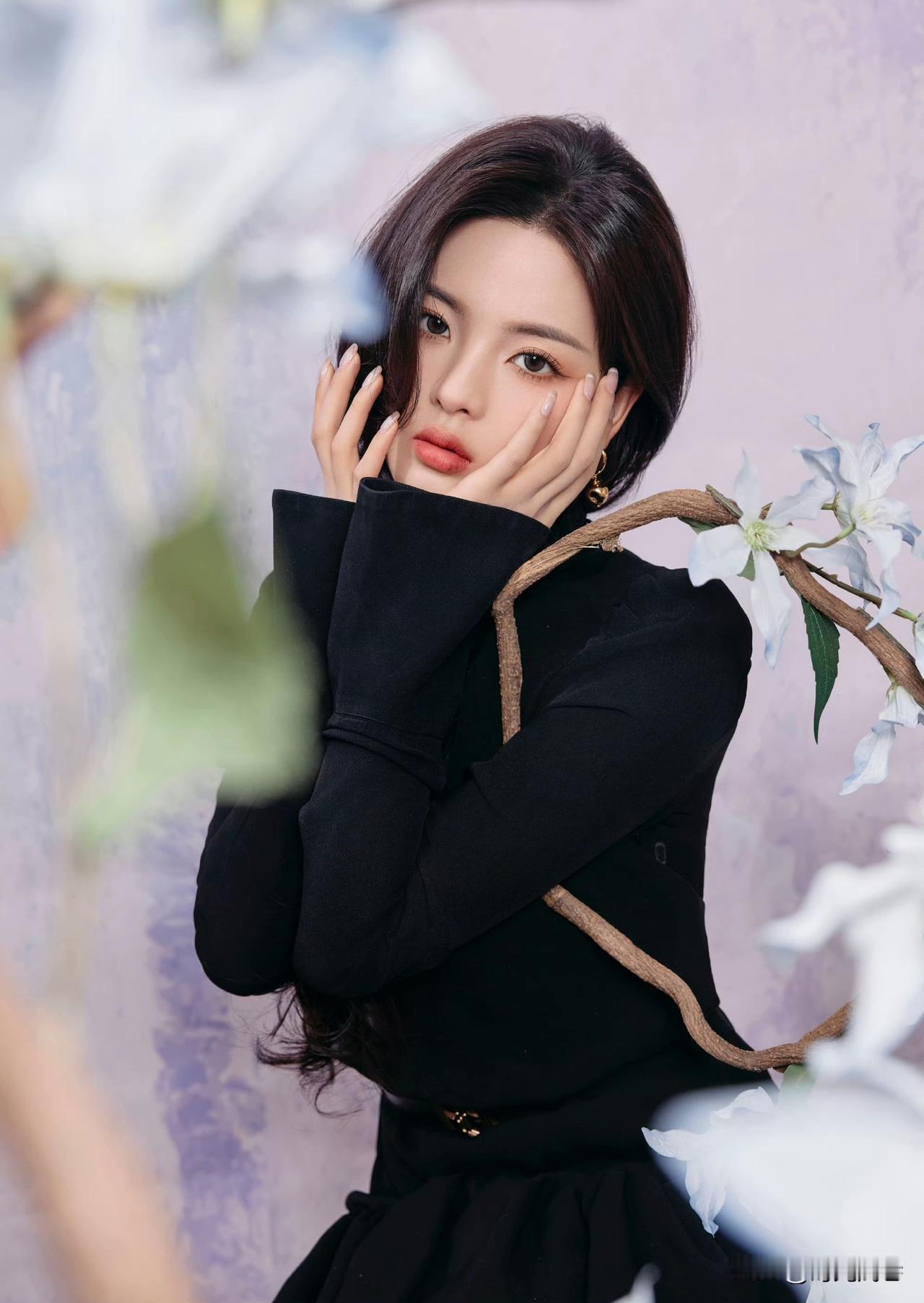 杨超越黑色系穿搭,优雅迷人,气质绝佳!