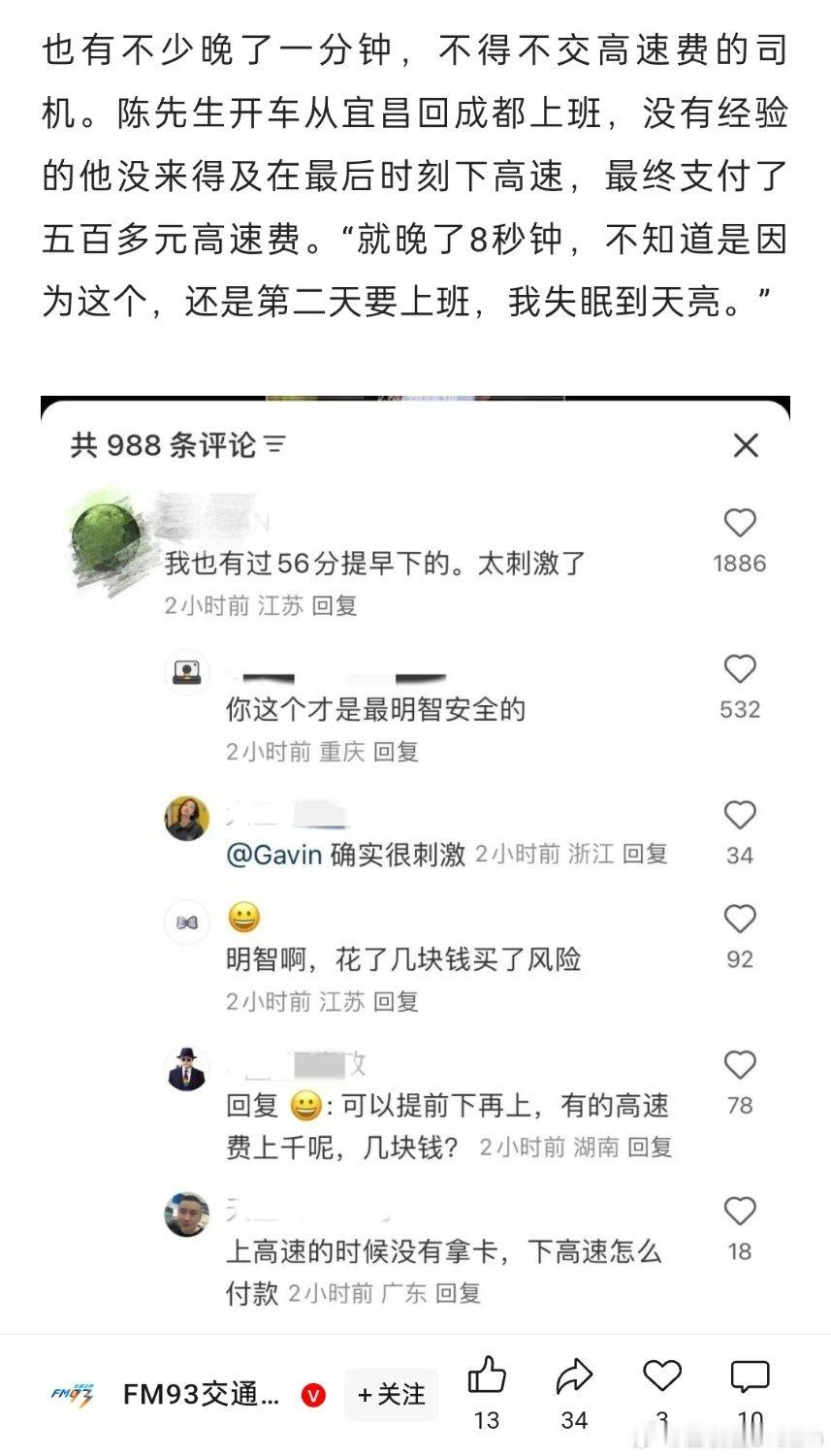 太冤了!一位司机卡点高速免费最后一分,没想到晚8秒付五百多元!有聪明的网友就