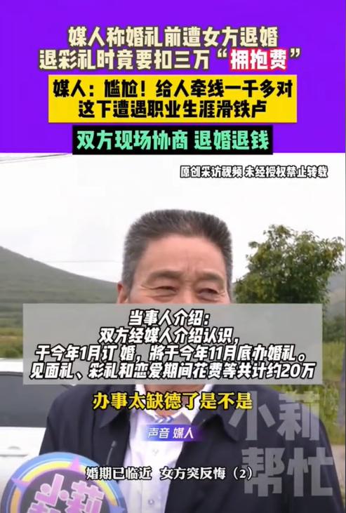 河南平顶山,男子和女友拍完婚纱照,订了酒店,婚宴请柬都发出去了,可女友却突然说不嫁了。男子要求女友退还20万元的彩礼,女友表示愿意退,但必须扣除3万元的"拥抱费"。 据小莉帮忙10月7日报道,万先生年纪也不小了,其家人一直委托媒人给他介绍对象,但万先生却一直没有相中谁。 去年的时候,经媒人的介绍,万先生认识了一女子,并对她一见钟情,这让万先生的家人十分高兴,很快便张罗起了二人的婚事。 在二人处对象时,万先生给女友既买电脑又是买手表,二人还约定在今年的1月份订婚。 之后,二人去拍了婚纱照。期间,摄影师为了拍照效果,没少让二人互相拥抱。紧接着,二人去挑选了结婚的酒店,还定了不少婚宴桌。就连喜帖都已经发出去了,期待着亲友们前来参加二人的婚礼。 可万先生怎么也没想到,这眼看还有一个多月就要订婚了,女友却突然说不想结婚了。 万先生多次和女友商议,但女友就是不想和万先生结婚了。媒人询问二人有啥矛盾时,女友认为万先生太老实了,工资也太低了,今后是没办法养家的。 既然女友心意已决,万先生自然也不能用强,于是和女友一方协商退彩礼一事,要求女友退还全部的20多万元彩礼,其他订婚宴、发邀请函等损失就不和女友计较了。 女友也表示愿意退还彩礼,不过女友的父母拿出了一张二人的婚纱照,说万先生对女友又搂又抱,玷污了女友的清白,对女友的声誉不太好,所以要扣除拥抱费3万元。 万先生对于这个拥抱费十分不理解,那明明是摄影师为了拍好婚纱照要求的,女友当时也同意了,所以此刻再来索要拥抱费说不过去。 随后,女友家人又说这3万元包含了,二人恋爱一年多时间,女友所有的花费。如:吃饭、看电影等。 对于女友家人的要求,媒人也忍不住吐槽说:“我撮合了1000多对新人,就这家事儿真多!” 最终,经过双方的友好协商,女方只退还了170500元的彩礼。至此,两家婚事彻底告吹。 《关于适用婚姻家庭编的解释(一)》第5条规定,当事人请求返还按照习俗给付的彩礼的,如果查明属于以下情形,人民法院应当予以支持:(一)双方未办理结婚登记手续;(二)双方办理结婚登记手续但确未共同生活;(三)婚前给付并导致给付人生活困难。 按照这项规定,万先生和女友并未领证结婚,二人只是拍了婚纱照,订了婚宴,所以二人分手时,万先生有权要求女友退还全部彩礼。 女方也的确同意了退还彩礼,但要扣除3万元的拥抱费以及女友的日常开销等,这就说不过去了。 按照万先生所说,他在拍摄婚纱照时搂抱女友,是因为摄影师的要求,而且当时女友也同意了。 因此,万先生并没有过错,无需支付什么拥抱费。 至于万先生与女友在恋爱的一年期间,女友的花销问题,应当由女友自行举证说明,哪些钱用在了哪些地方,否则无权要求万先生返还女友的花销。 那万先生可以要求女友返还电脑和手表吗? 《民法典》第657条规定,赠与合同是赠与人将自己的财产无偿给予受赠人,受赠人表示接受赠与的合同。 既然女友已经接受了万先生的赠与,那自然是不用返还的。 但如果万先生赠送女友电脑和手表,是为了达成缔结婚姻的目的的,这个情况就不一样了。 如果是有目的性的,那这个赠与行为就是附条件的赠与。一旦条件没有达成,那赠与行为就不能成立。 因此,只要万先生能证明这电脑和手表是为了结婚而赠与,就有权向女友要求返还。 最后,有不少网友认为这女子一家人都是来骗彩礼的。其实这的确有这个可能,在目前来说并没有什么确凿证据,所以今后为了防止骗彩礼的行为,还是尽量在领结婚证之前,不要急着支付彩礼。 对此,您怎么看?欢迎留言交流。