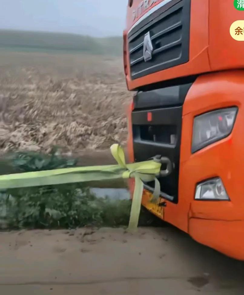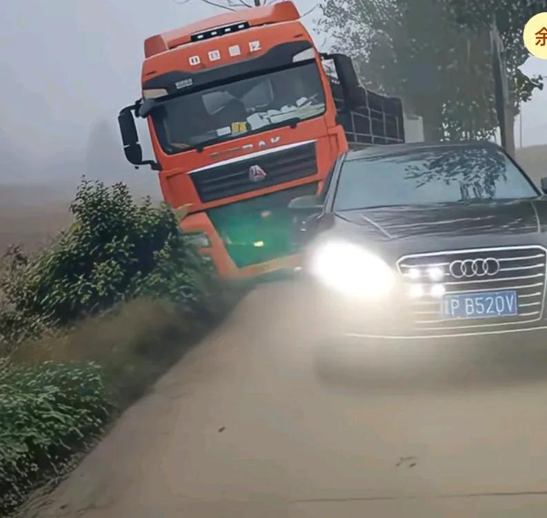 奥迪出婚车时遇到大货车陷到路边,直接系上绳子就开始了救援, 这车主真的是有大爱, 咱也不会开车, 也不懂这奥迪能把大货车拉出来吗, 有那种力量吗, 网友说,你尽管踩油门, 剩下的交给他, 他们说两辆奥迪也拉不出来,这个大货车, 就算拉出来货车的大梁也废了。