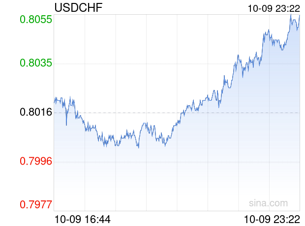 新浪外汇消息2025年10月09日,截至23时22分,外汇市场上美元兑瑞士法郎汇率突破1美元兑换0.8057瑞士法郎。涨幅为0.5115%