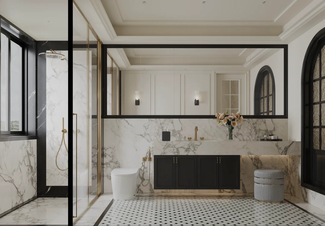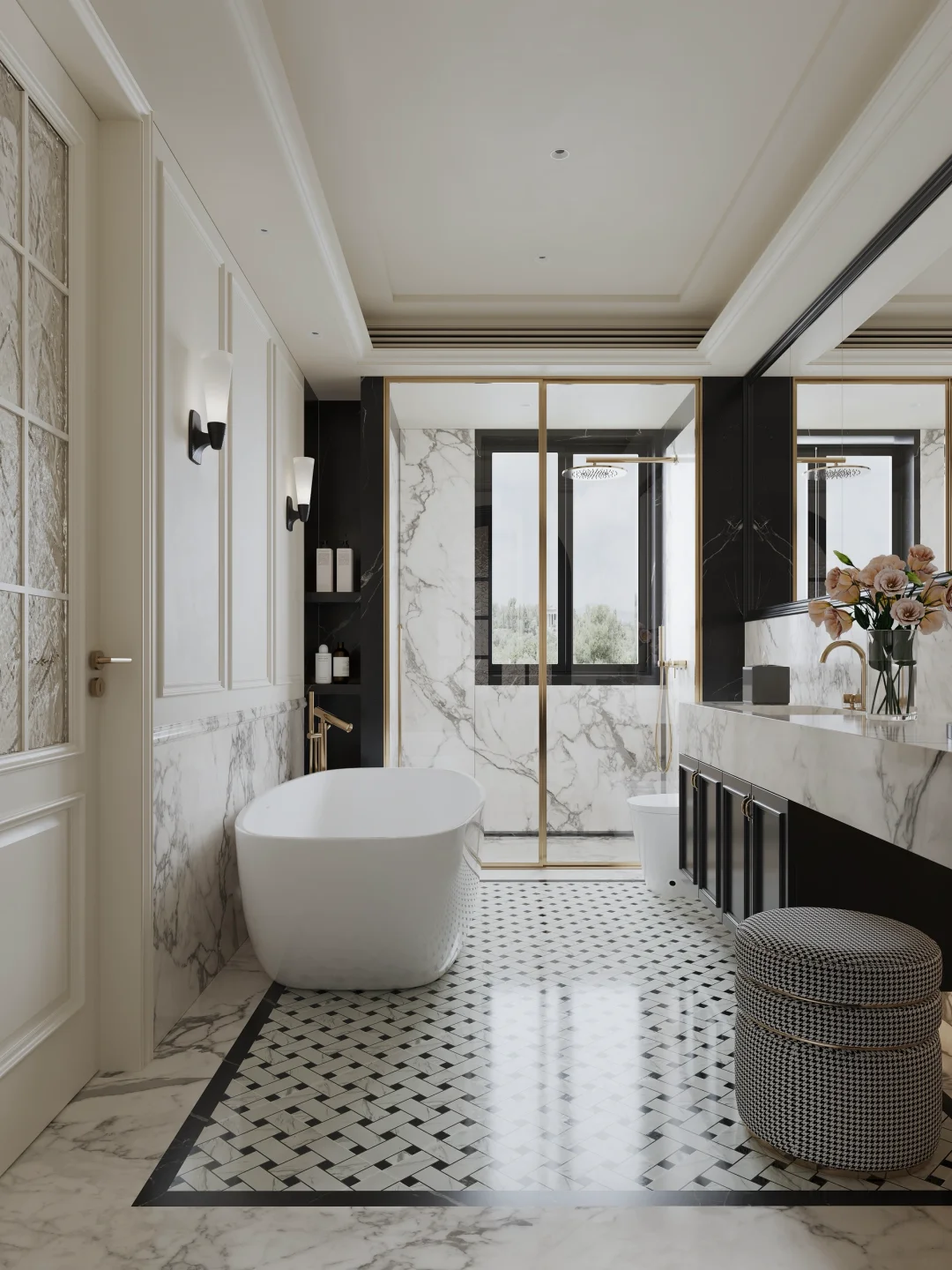 - 置身于一场优雅与奢华的交融之中 不敢想象在这样的卫生间泡澡会有多幸福😍 🤍 项目地址:深圳·润峯府 项目面积:160㎡ -