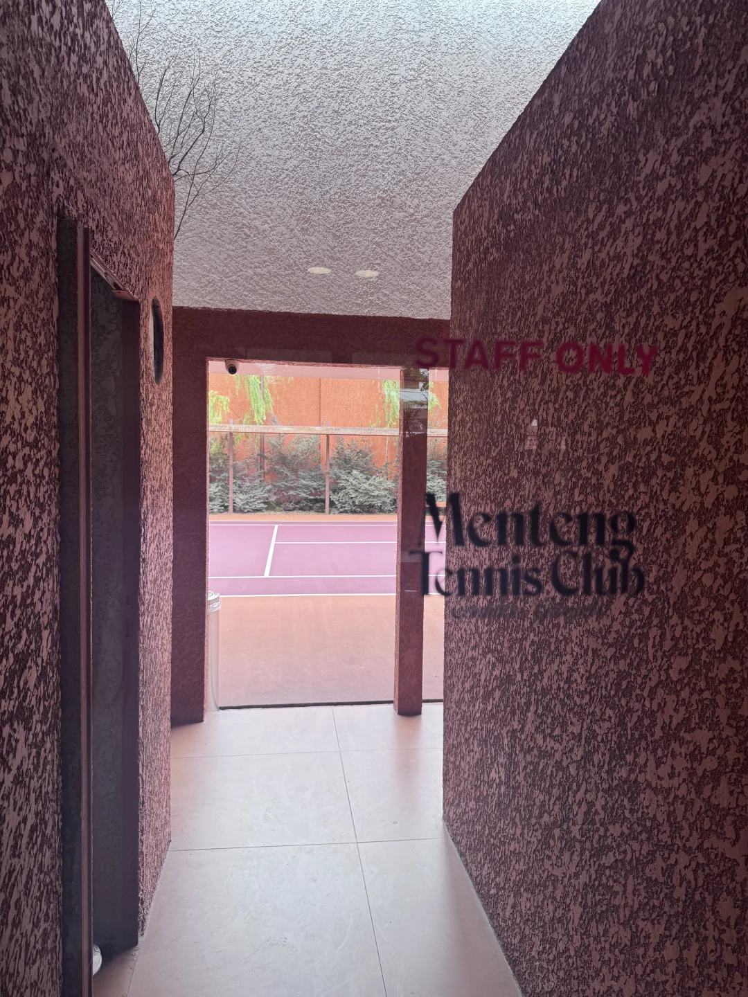 · 与咖啡馆相连的栗色硬地网球场,色彩与内部空间完美呼应,是绝佳的拍照背景。
